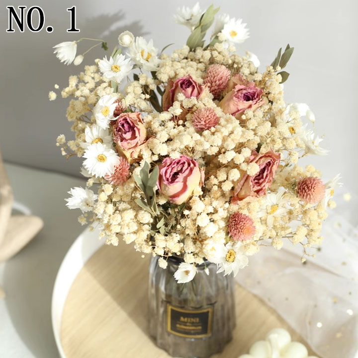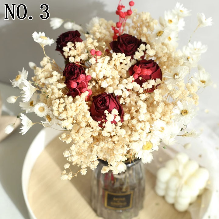 ドライフラワー ガラス花瓶 バラ ひま 花のみ/価格2300円 花+花瓶/価格3200円 NO.1 NO.2 NO.3 NO.4