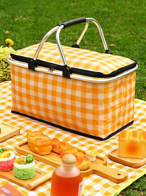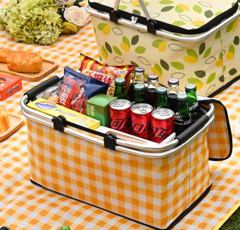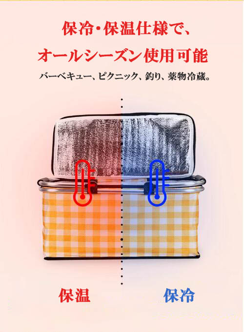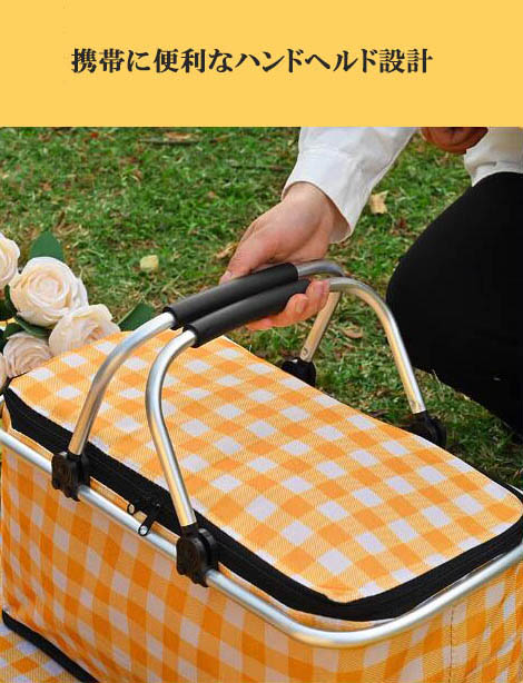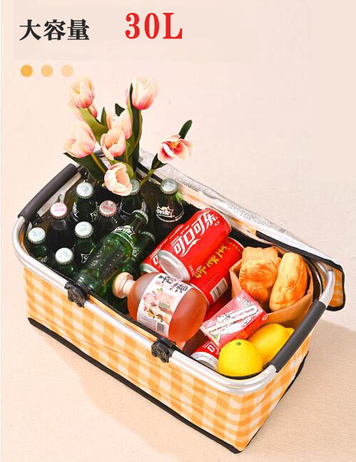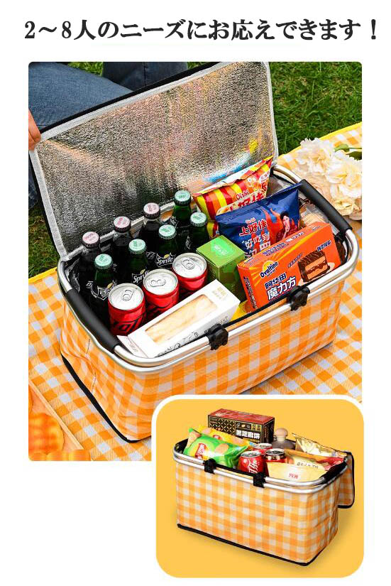 折りたたみショッピングバッグかご ピクニックバスケット 保冷バッグ ソフトクーラーボックス バスケット 買い物かご クーラーバッグ キャンプバスケット アルミホイル 手提げ 大 持ち運び断熱バスケット