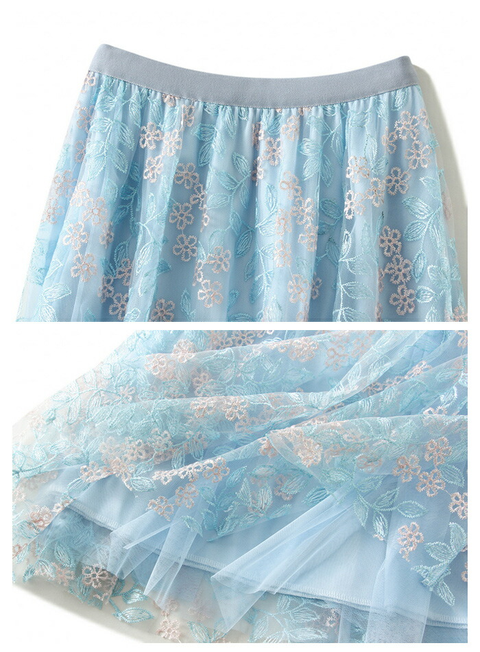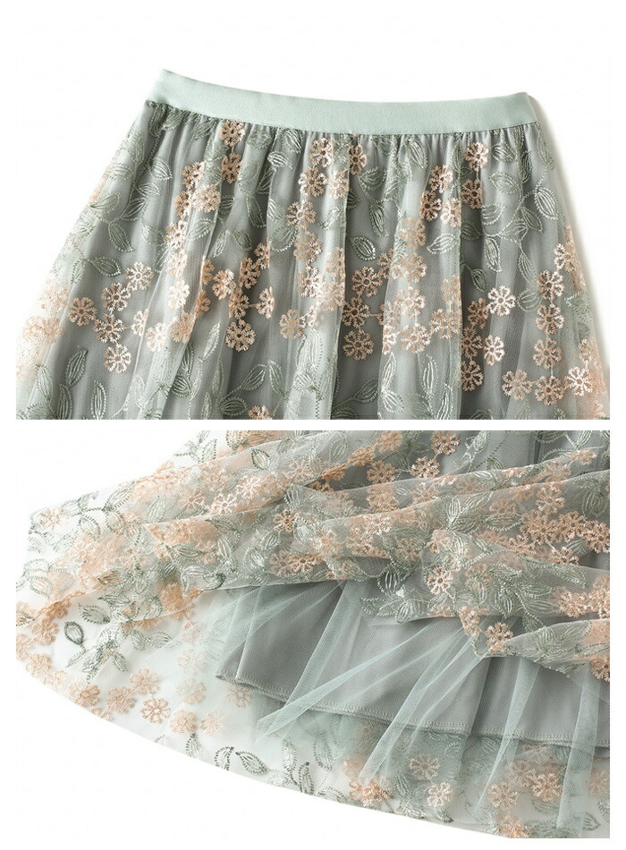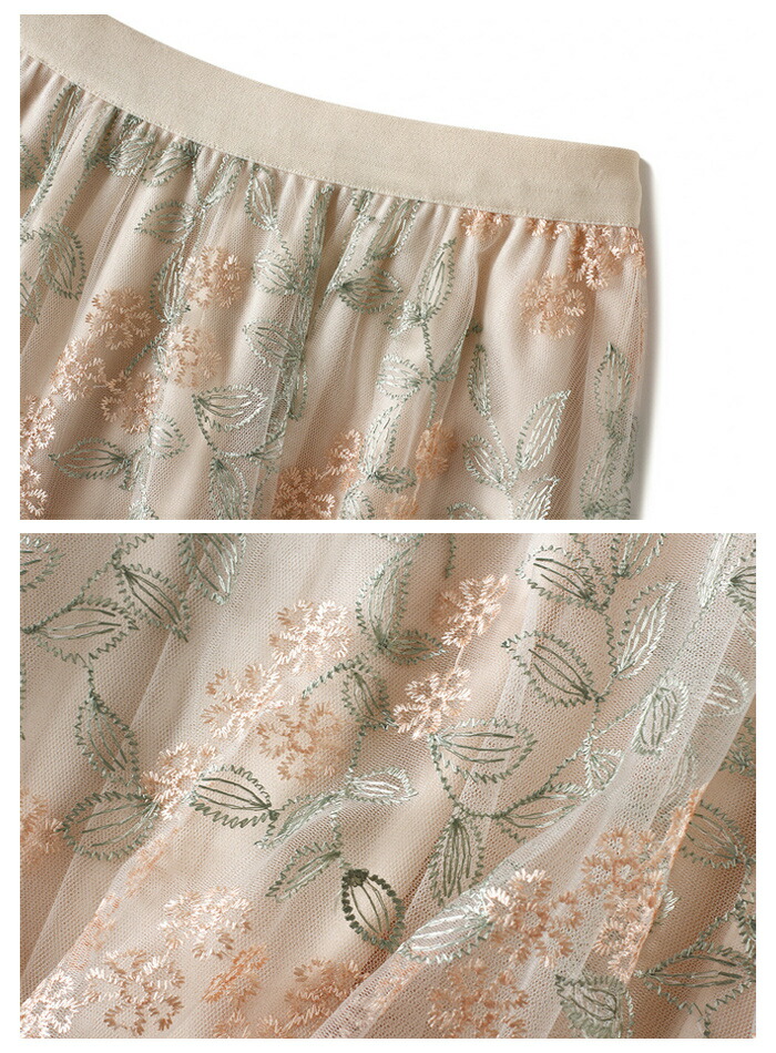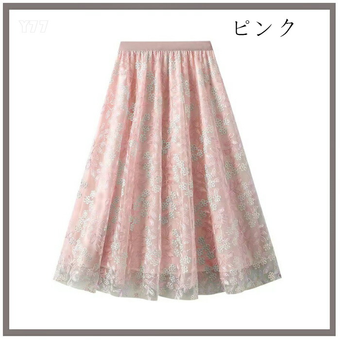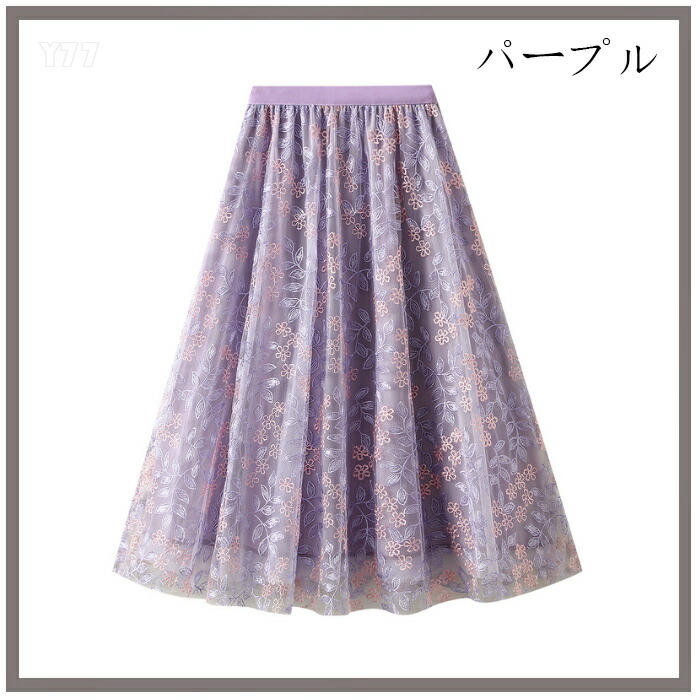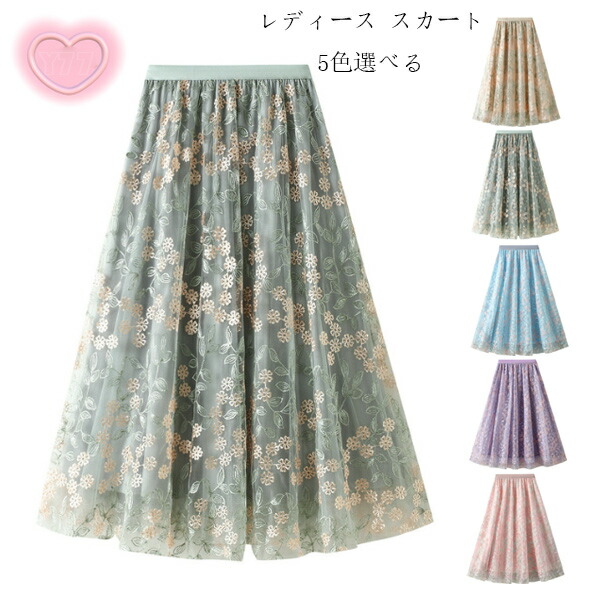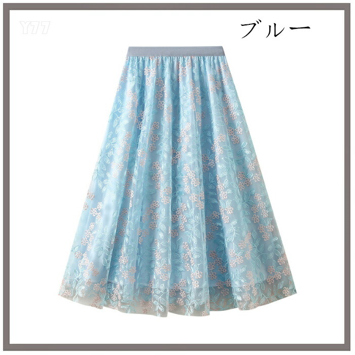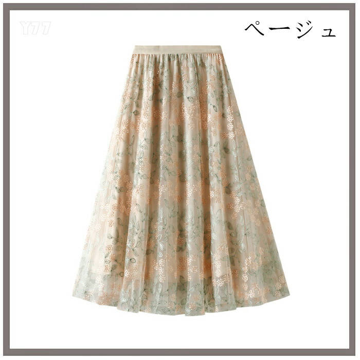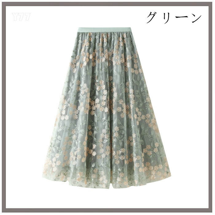レディース チュールスカート おしゃれ 花柄 スカート 春 夏 秋 発表会 お祝い マキシ ひざ下 aライン かわいい 美しい 刺繍 体型カバー リゾート パーティー 誕生日 旅行