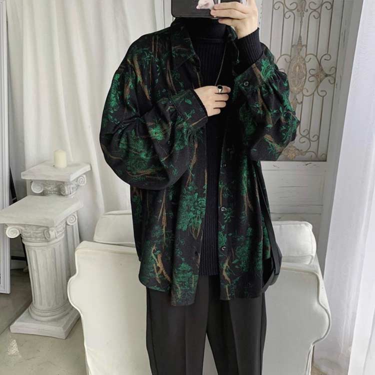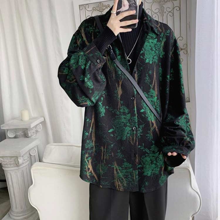 ゆったり カジュアルシャツ 地雷系 レ メンズファッション 新作 グリーン レッド S M L XL 2XL 3XL