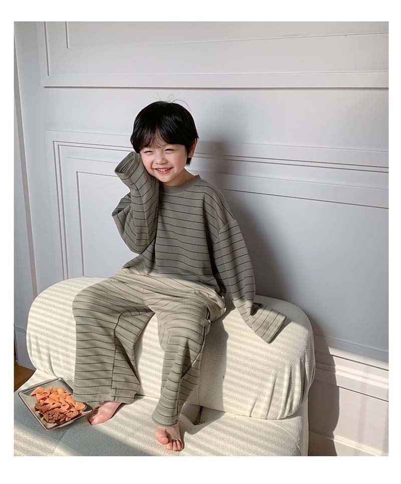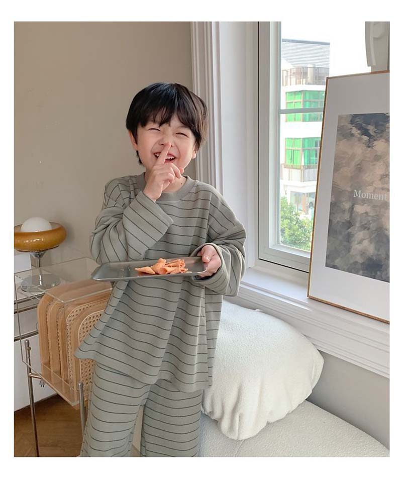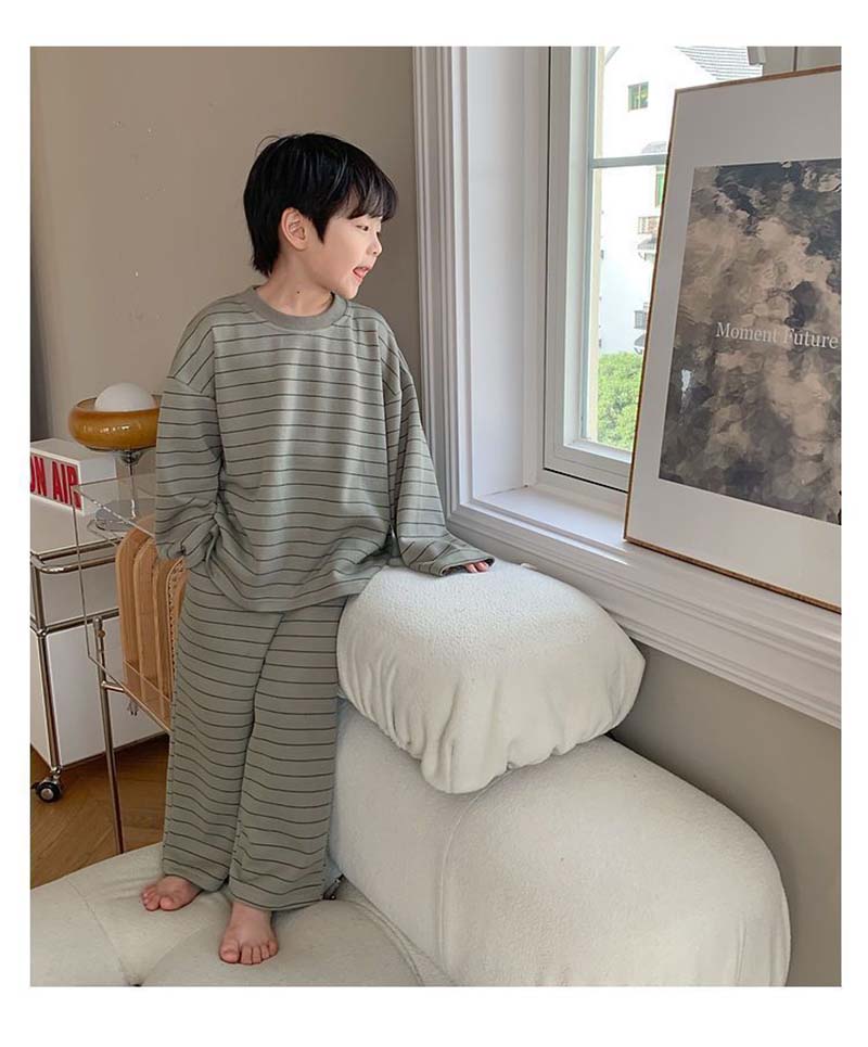 子供用パジャマ キッズ ベイビー 春 秋 冬 ストライプ柄 アップ 長袖 男の子 女の子 子供服 寝間着 上下セット 9柄 ナイトウェア ルームウェア ぱじゃま グレー 長ズボン 男女 ブラック