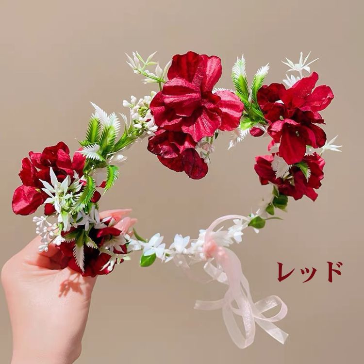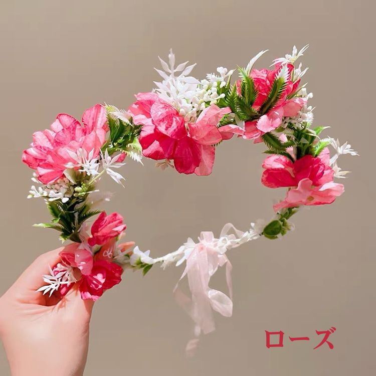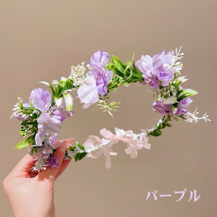 7カラー花冠 花かんむり ヘッドドレス バッグ 小物 ブランド雑貨 通販 パープル ローズ オレンジ レッド ピンク ホワイト ブルー