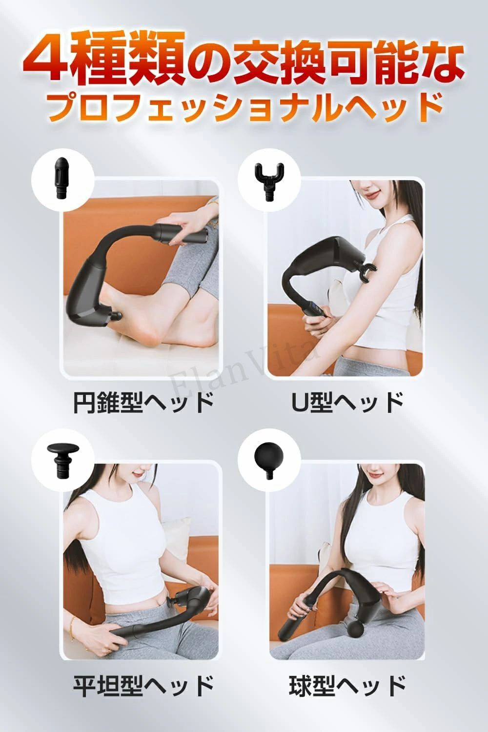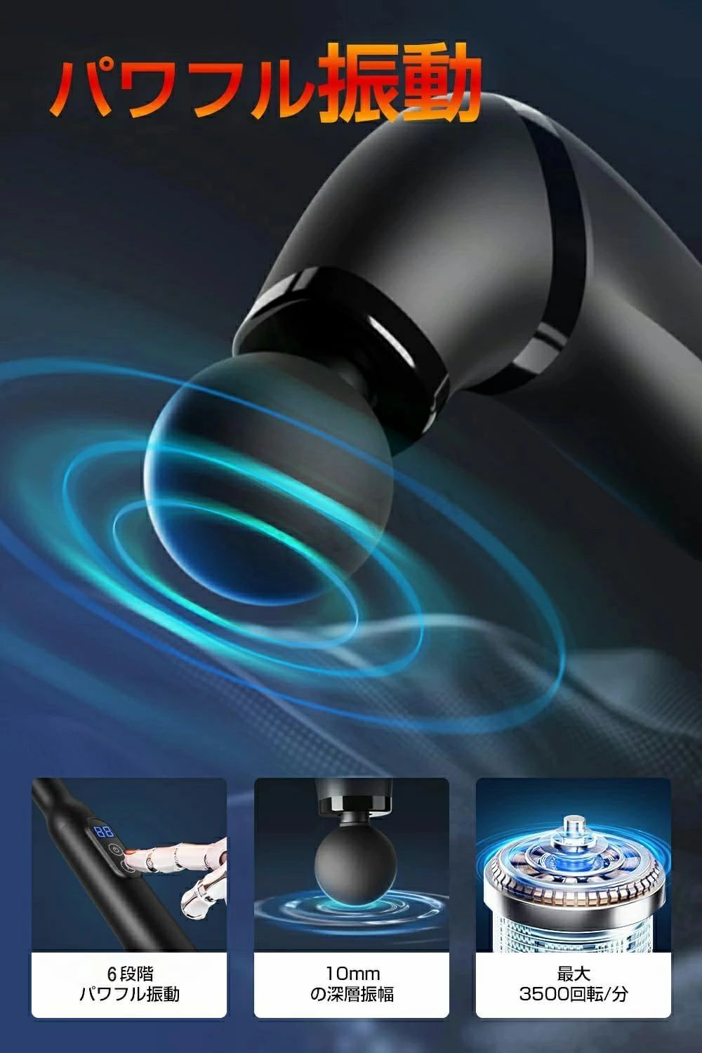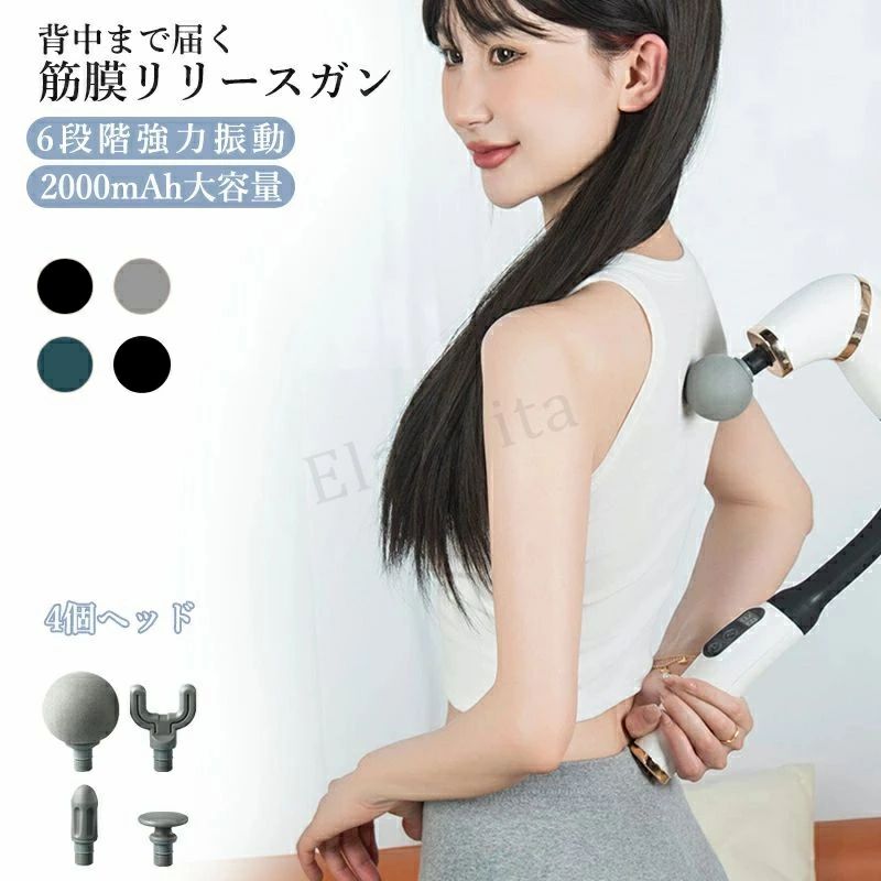ハンディガン 最大3500回転 分 4個ヘッド 【背中まで届く 2000mAh大容量 10mm深層振幅 筋膜ガン 長時間連続使用 延 強力全身解放