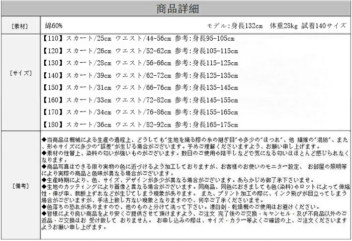 140スカート/39cm ウエスト/62-72cm 参考:身長125-135cm