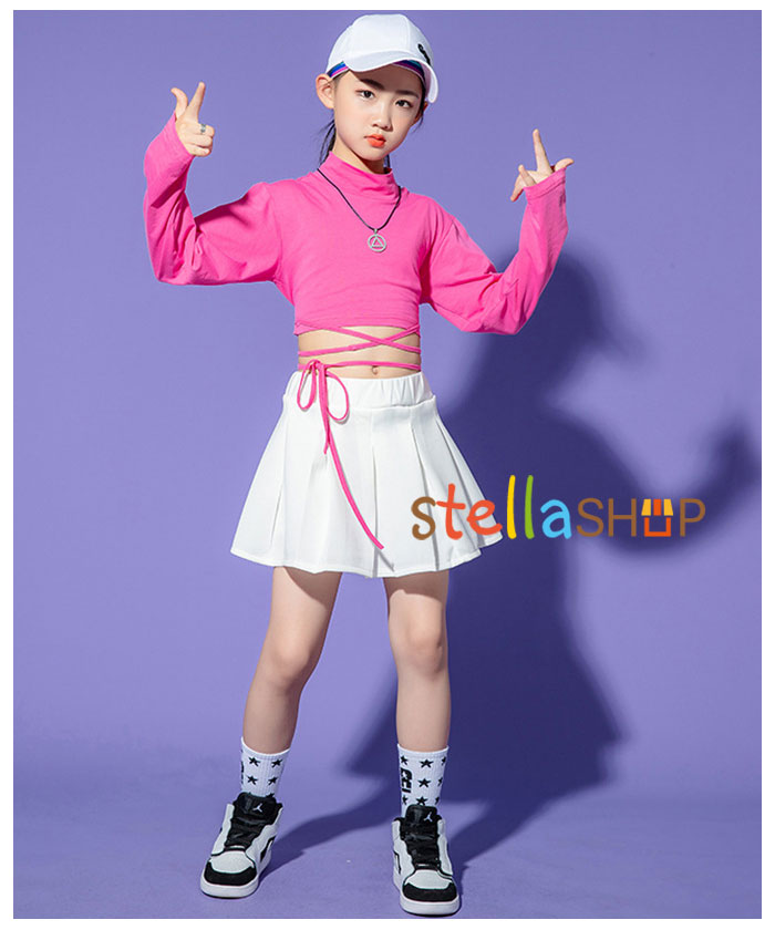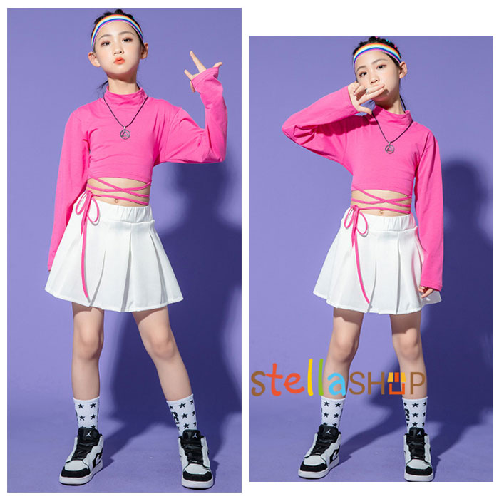 キッズ ダンス衣装 スカート 女の子 白スカート 110 120 130 140 150 160 170 180 hiphop k-pop 演出服 舞台 応援団 練習着 ガールズ 団体服