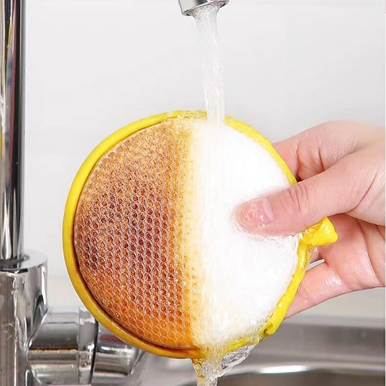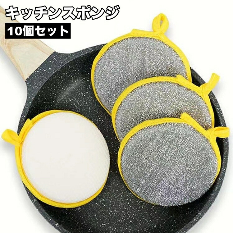 スポンジ 10個セット 食器スポンジ キッチンスポンジ 両面 食器洗い用 台所用品 キッチン雑貨 日用品雑貨 キッチン用品 皿洗い ループ付き 丸型 サークル 円 コンロ掃除 汚れ落とし 吊り下 掃除