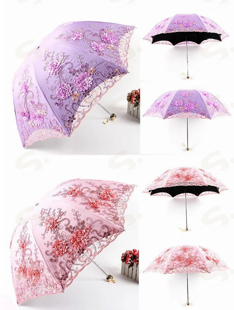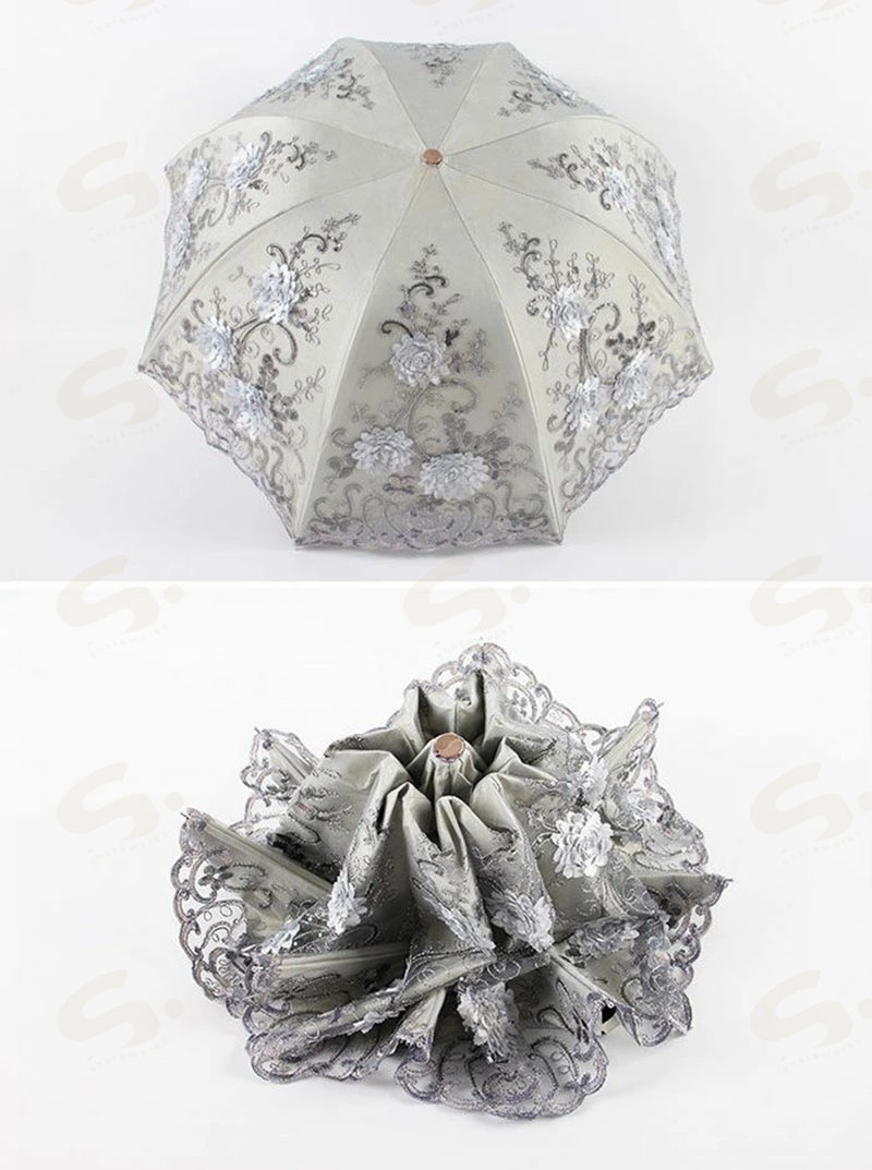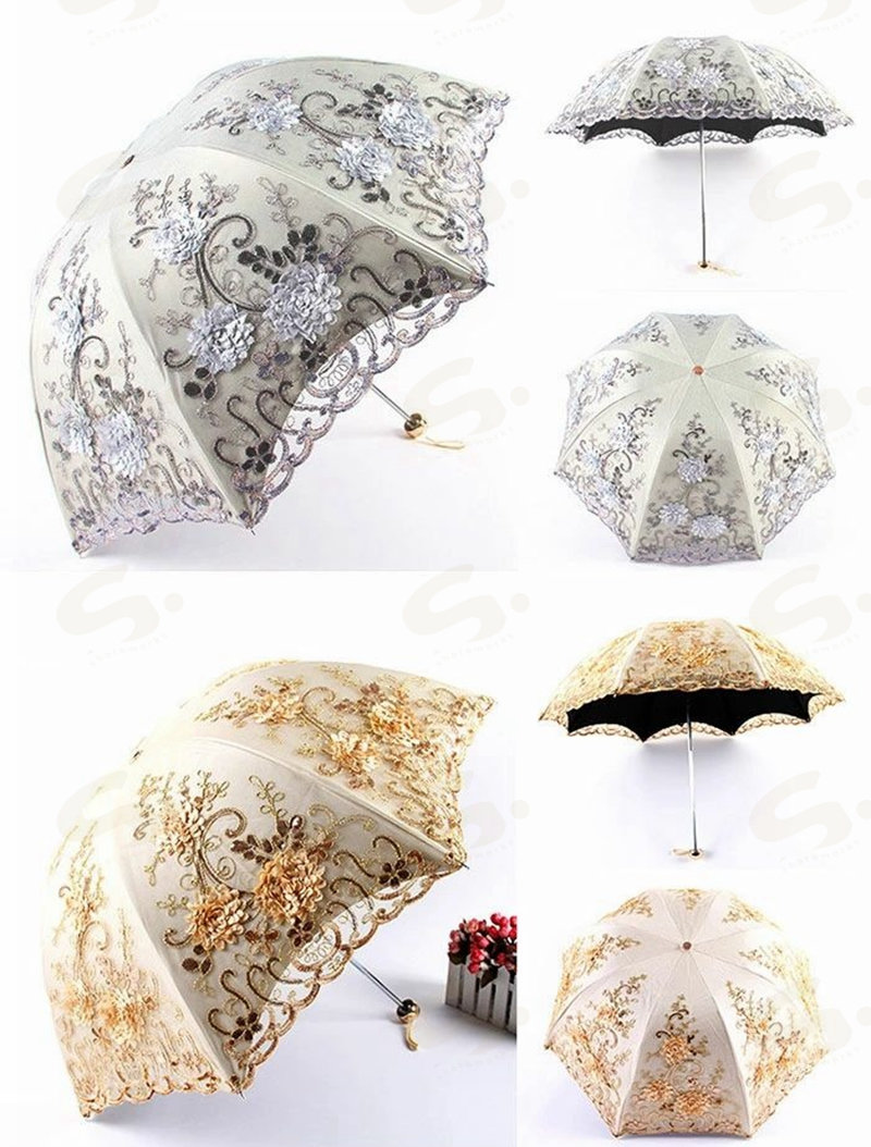 日傘 晴雨兼用 刺繍 レース 折りたたみ 折りたたみ傘 8本骨 3段折り 携帯便利 軽量 可愛い 傘 男女兼用 梅雨対策 超撥水 UVカット 紫外線対策 プリンセス 大きめ 手動開閉 撥水加工