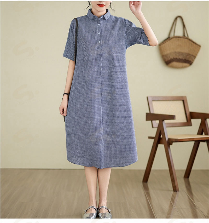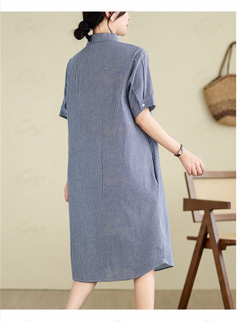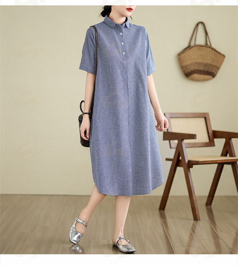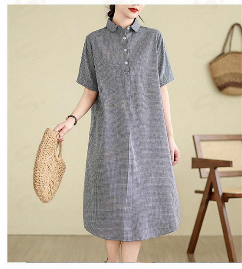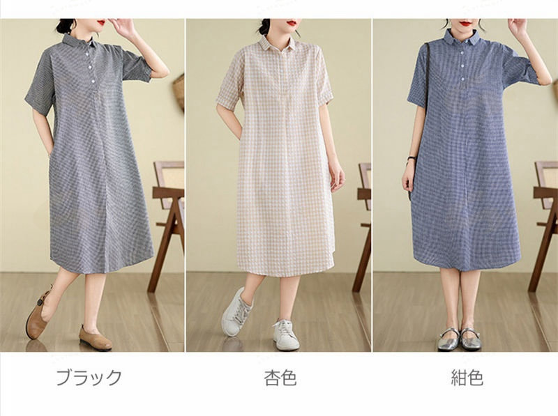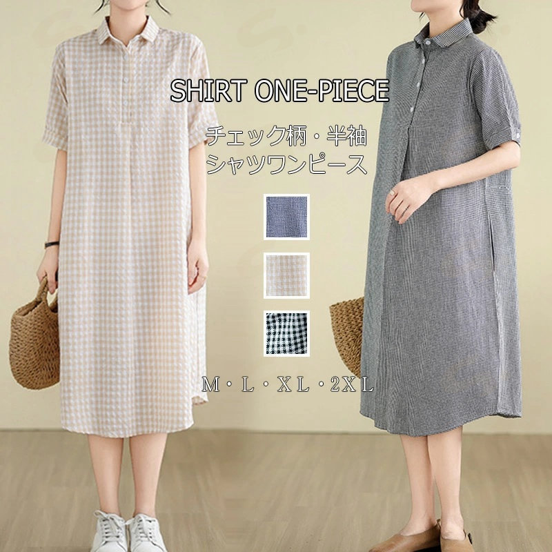 ワンピース ロングワンピース シャツワンピース レディース チュニック シャツワンピ ロングシャツ チェック柄 夏 半袖 春 秋 ゆったり 体型カバー シンプル 着痩せ カジュアル 大 ベーシック