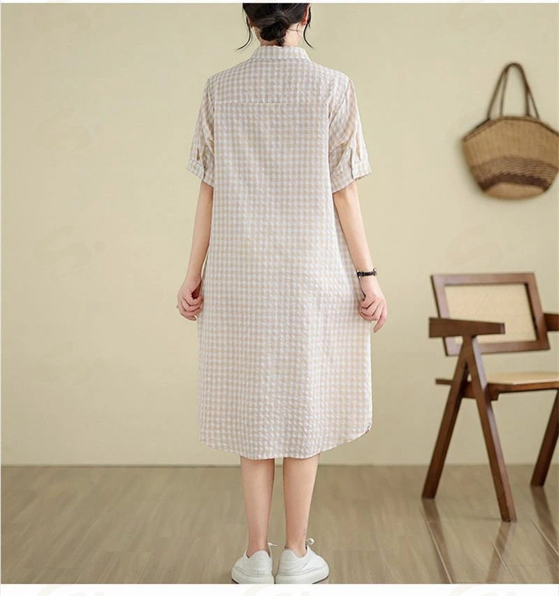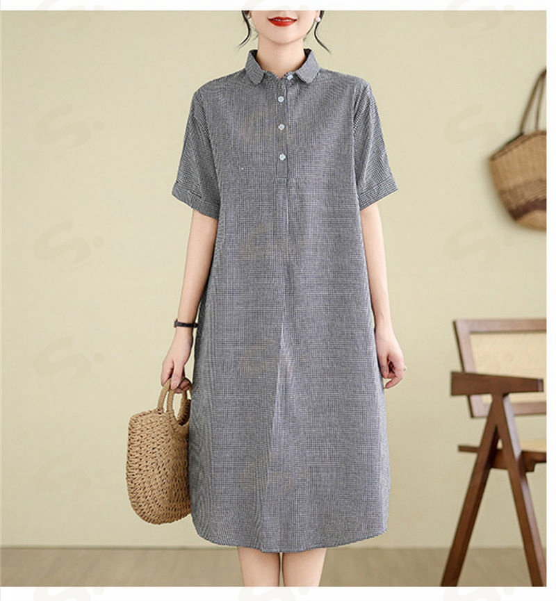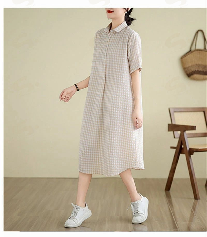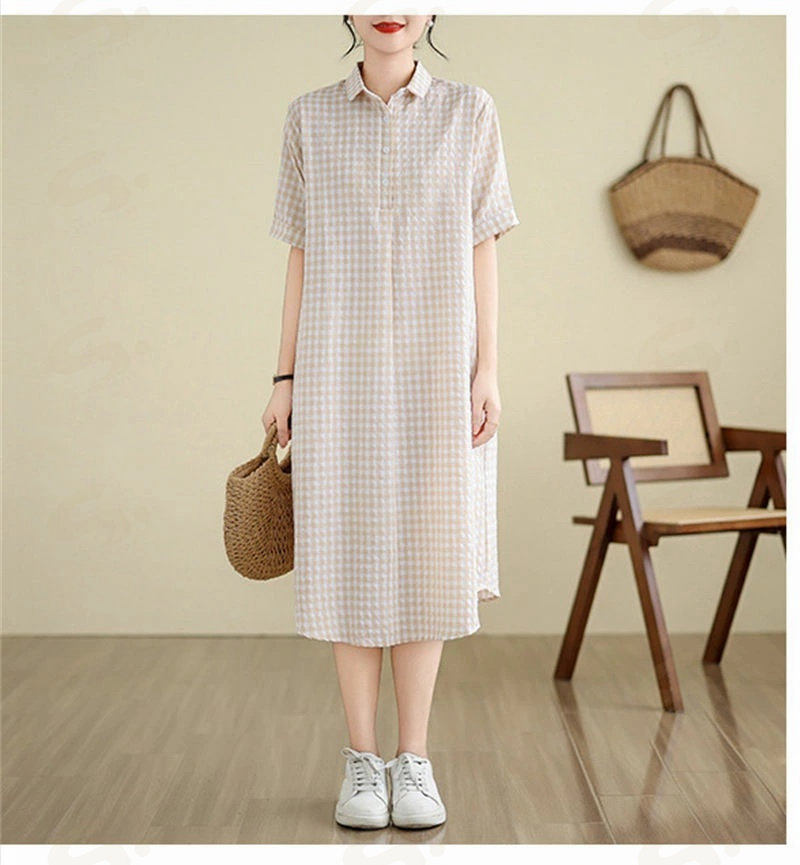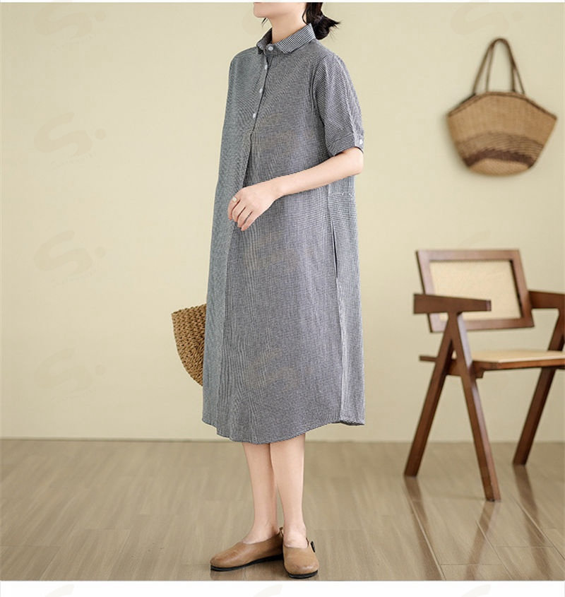 ワンピース ロングワンピース シャツワンピース レディース チュニック シャツワンピ ロングシャツ チェック柄 夏 半袖 春 秋 ゆったり 体型カバー シンプル 着痩せ カジュアル 大 ベーシック