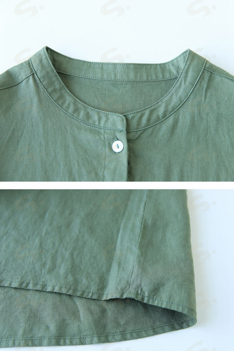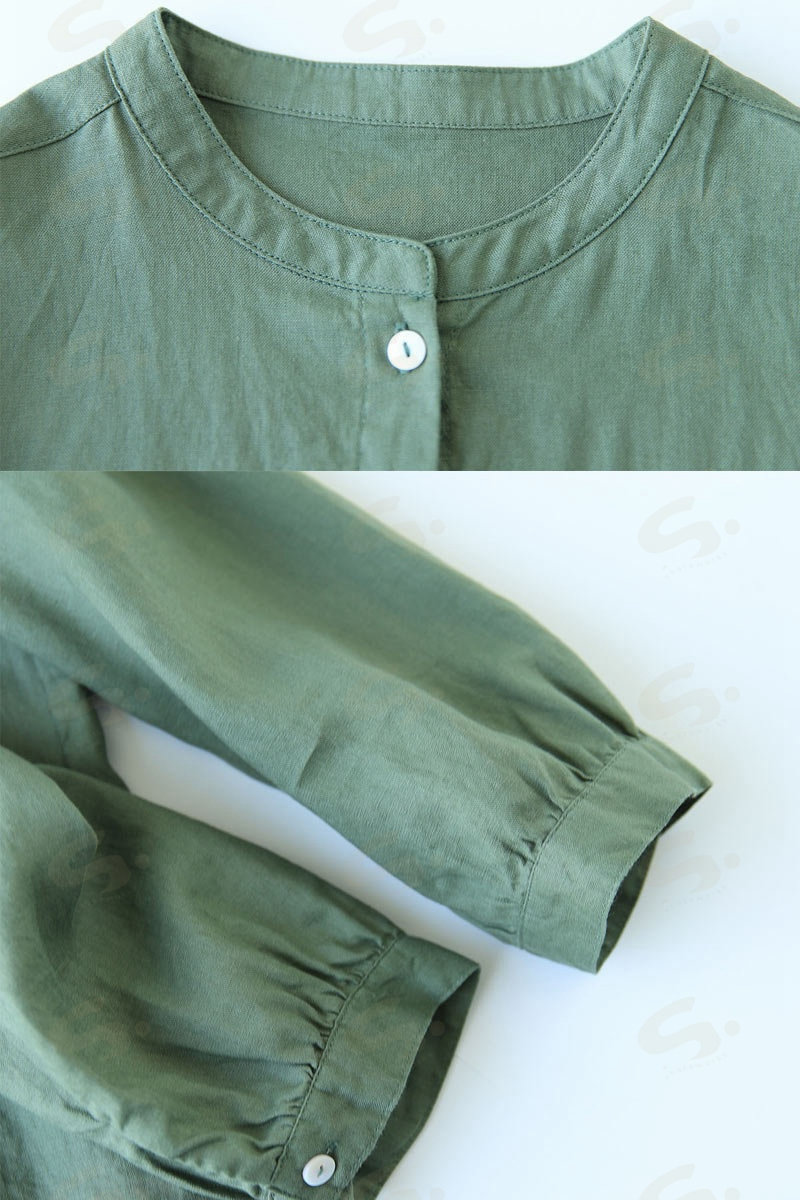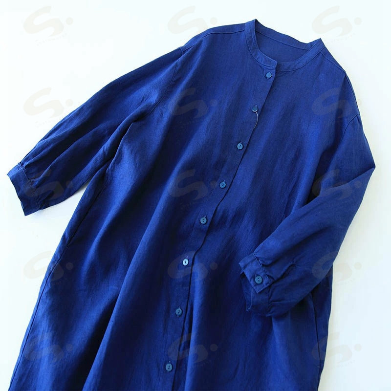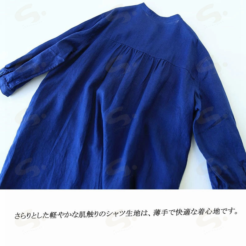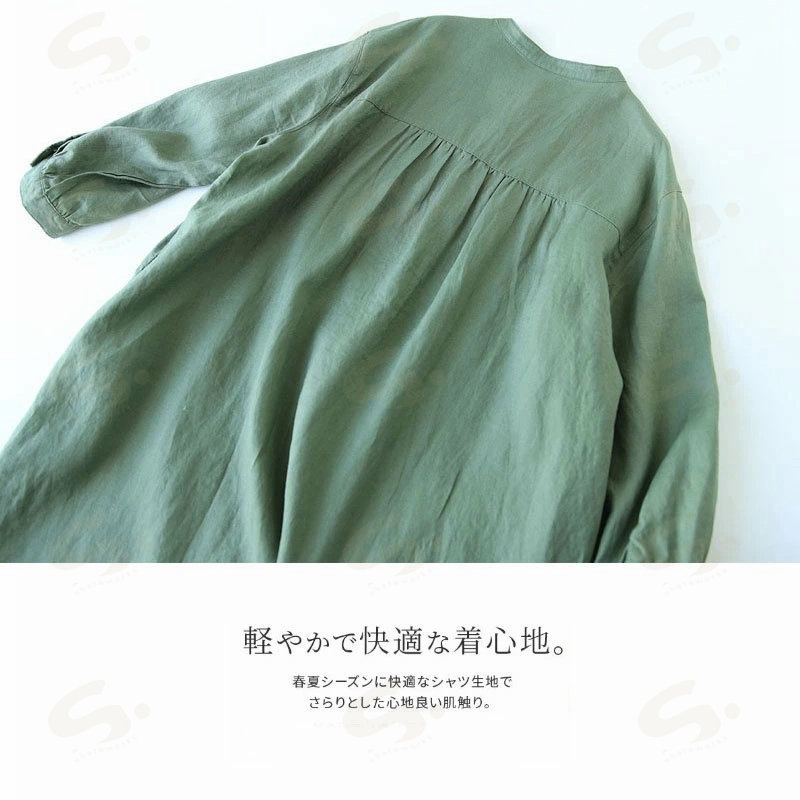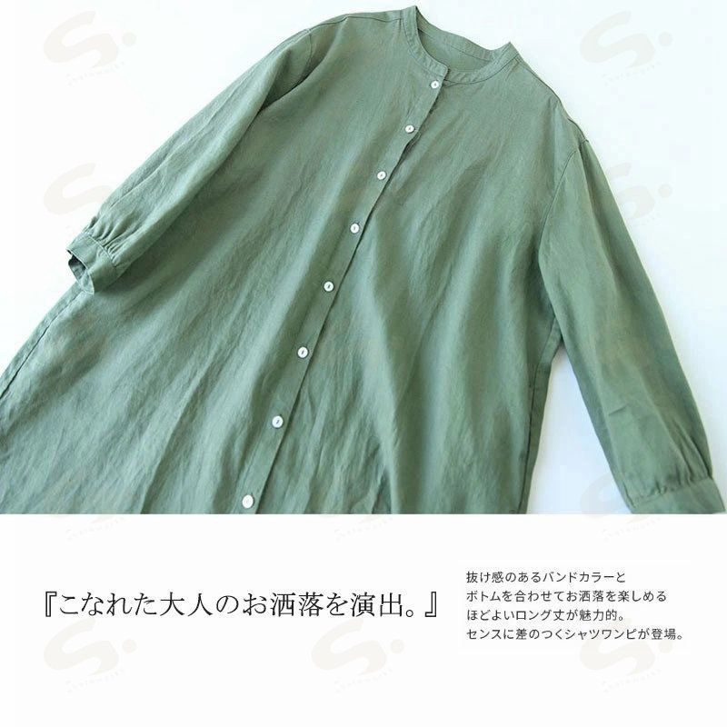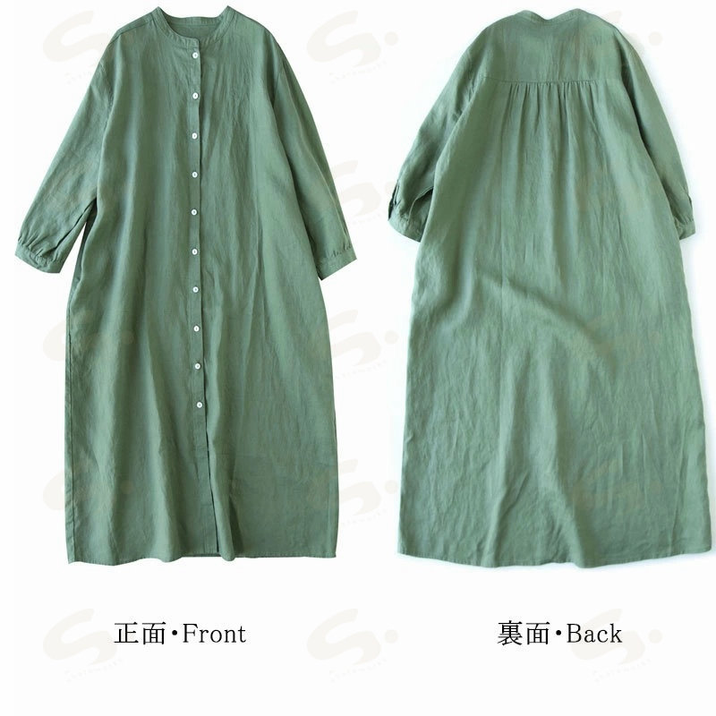 シャツワンピース リネン 夏 ロング グリーン 麻色 紺色 M L XL 2XL