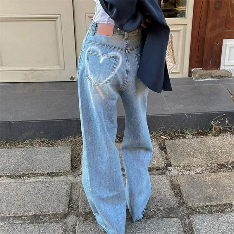 ハート デニムパンツ パンツ ワイドパンツ レディース デニム ロングパンツ ワイド ロング丈 バックハート ストレート ハイウエスト 可愛い ジーンズ ボトムス プリント おしゃれ ゆったり ズボン