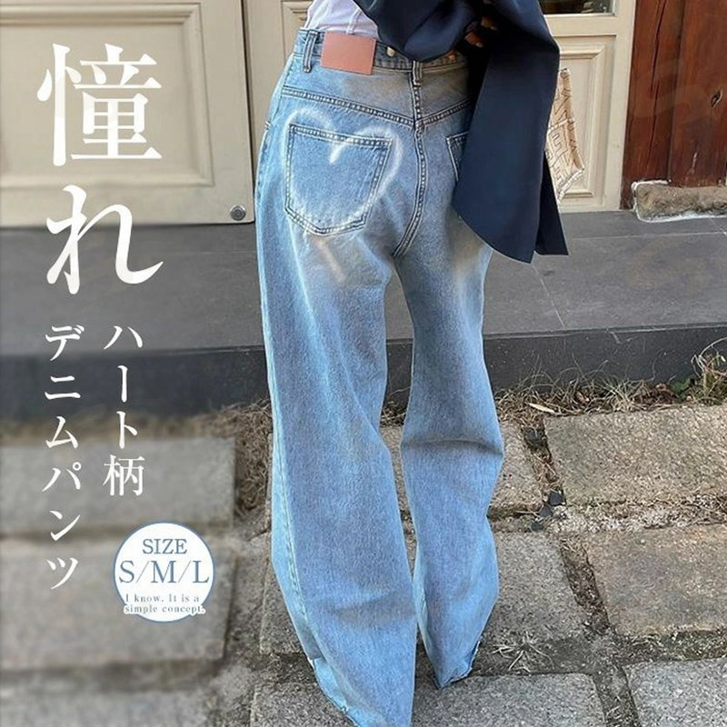 ハート デニムパンツ パンツ ワイドパ レディースファッション 超目玉商品 S M L