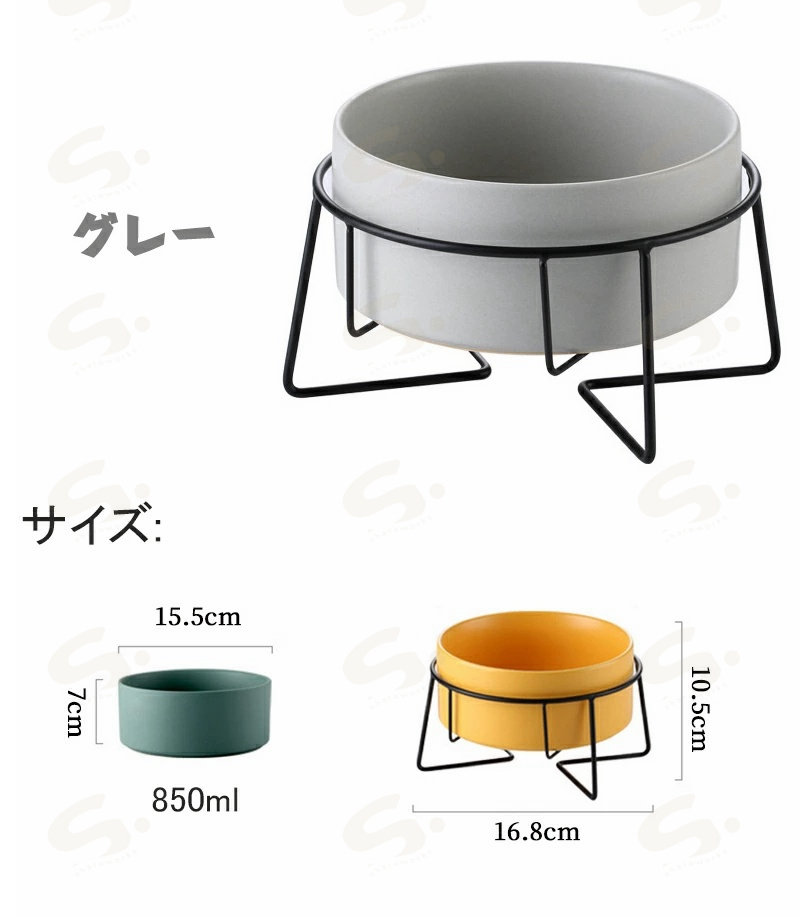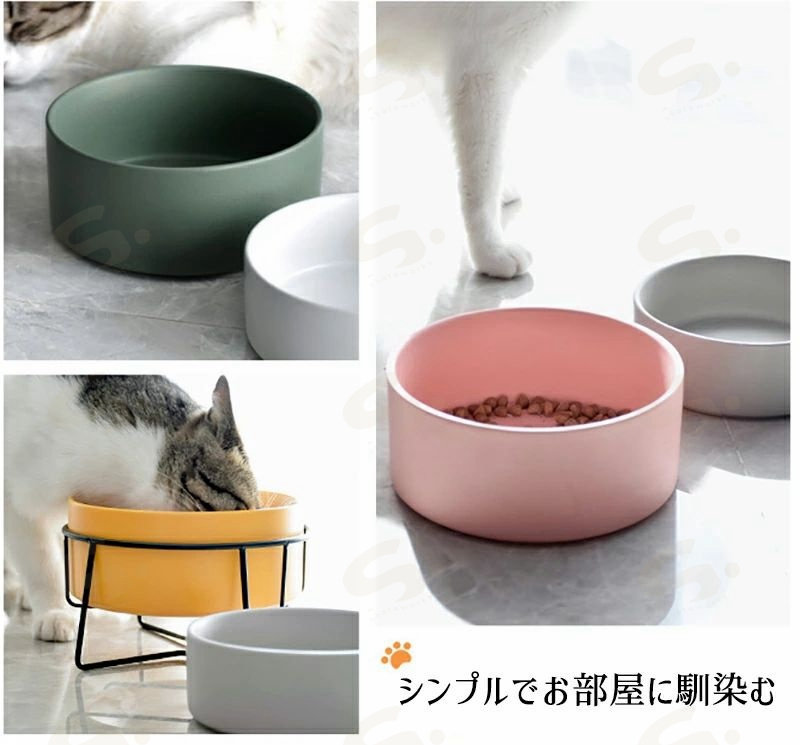 猫食器 ネコボウル ねこエサ入れ ねこ グレー ホワイト イエロー ピンク グリーン