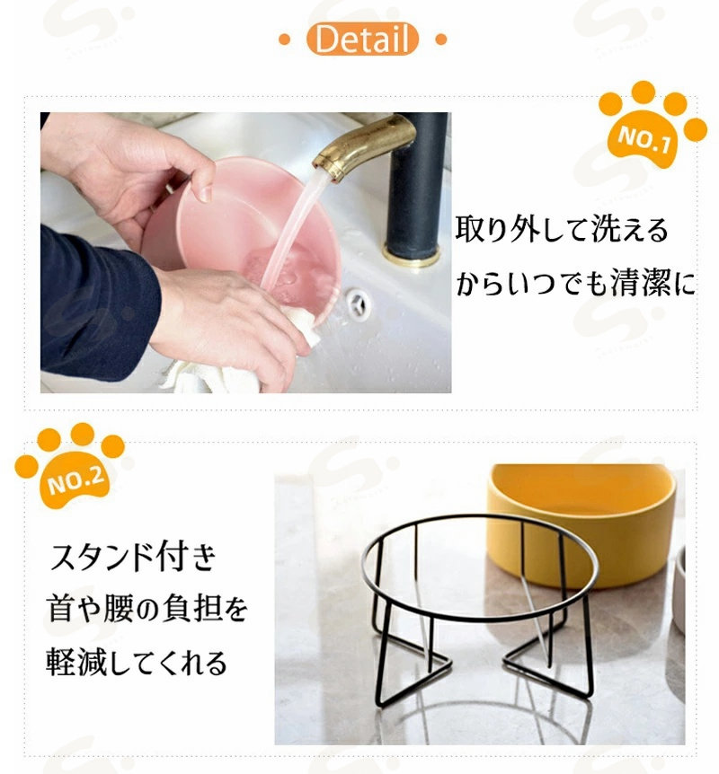 【 食べやすい 】器の縁に適度な丸みと、フードや水をこぼしにくい形状です。ごはんが進むピッタリの高さで、首を曲げすぎず、体への負担を和らげ、ラクな姿勢で食事ができます。