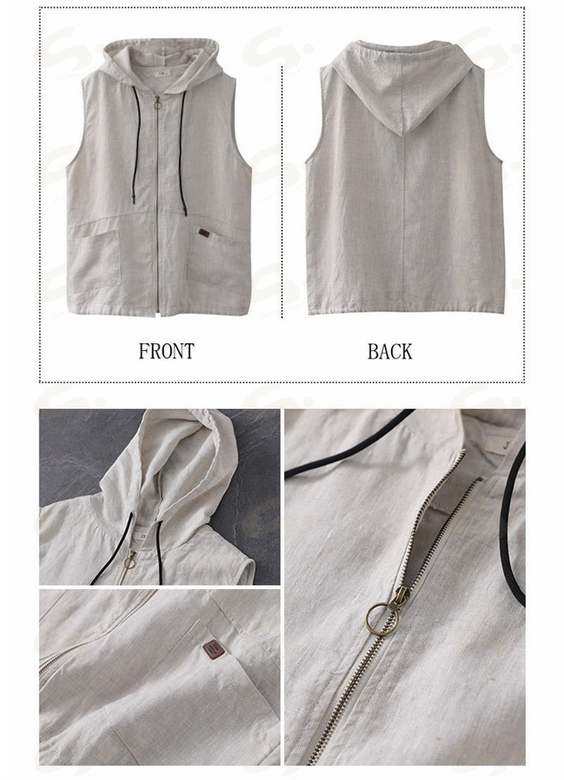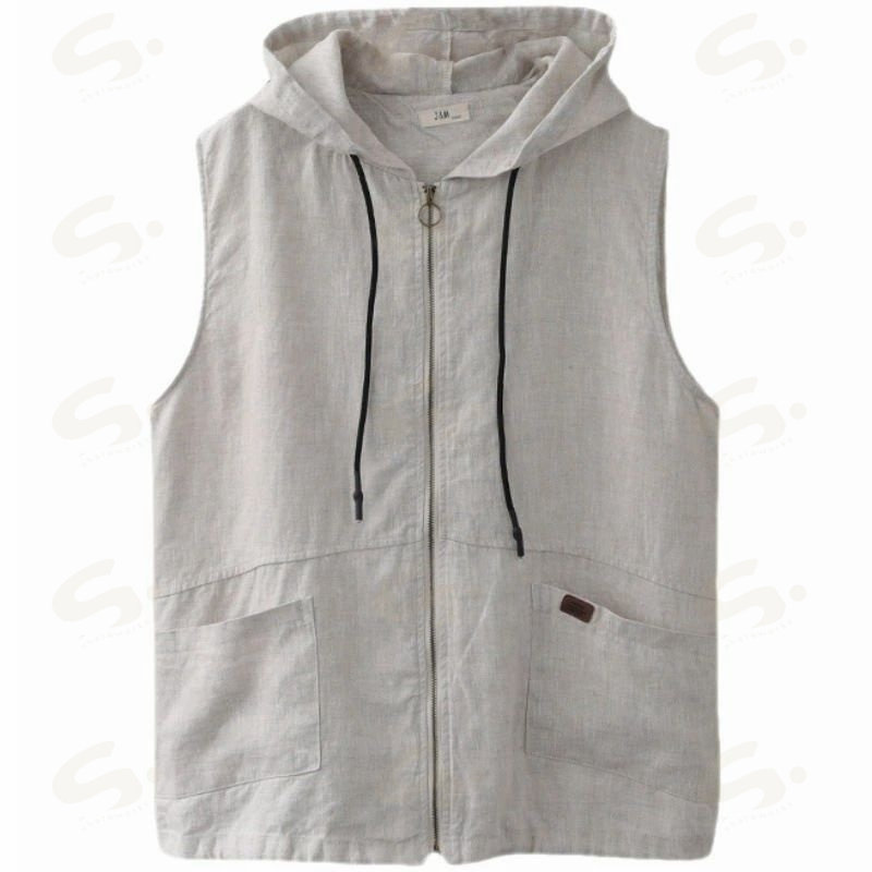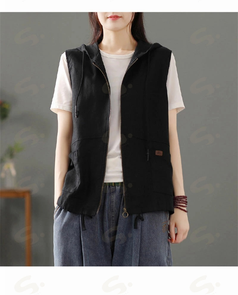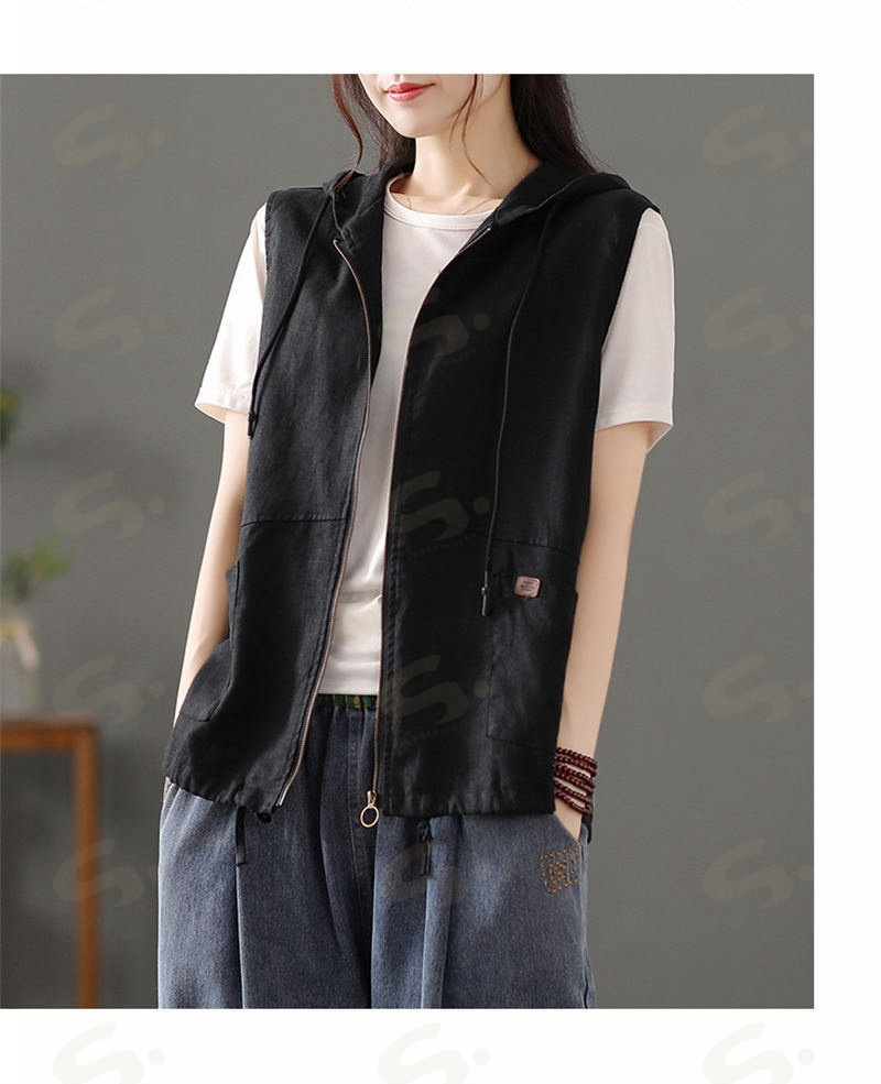 ベスト ジレ レディース 綿麻 リネンベスト 春 トップス アウター ノースリーブ トレンチベスト ジレンチ コート レイヤード 前開き 無地 羽織り 綿麻風 ライトアウター ショート丈 フード 羽織