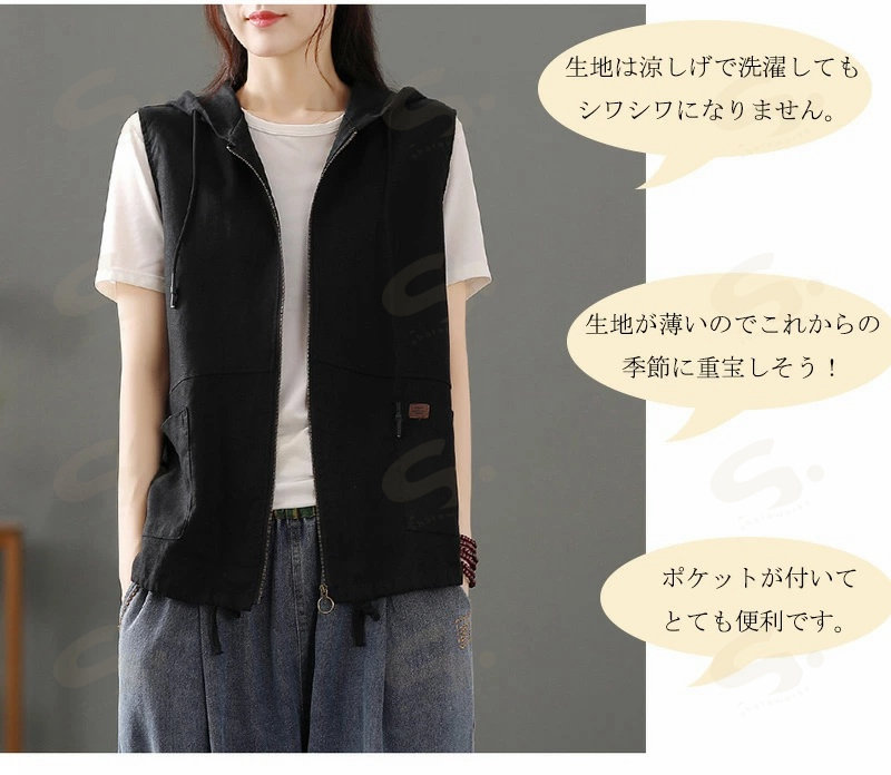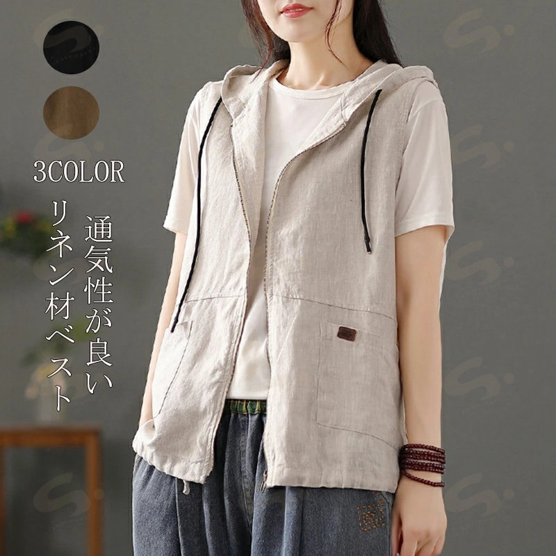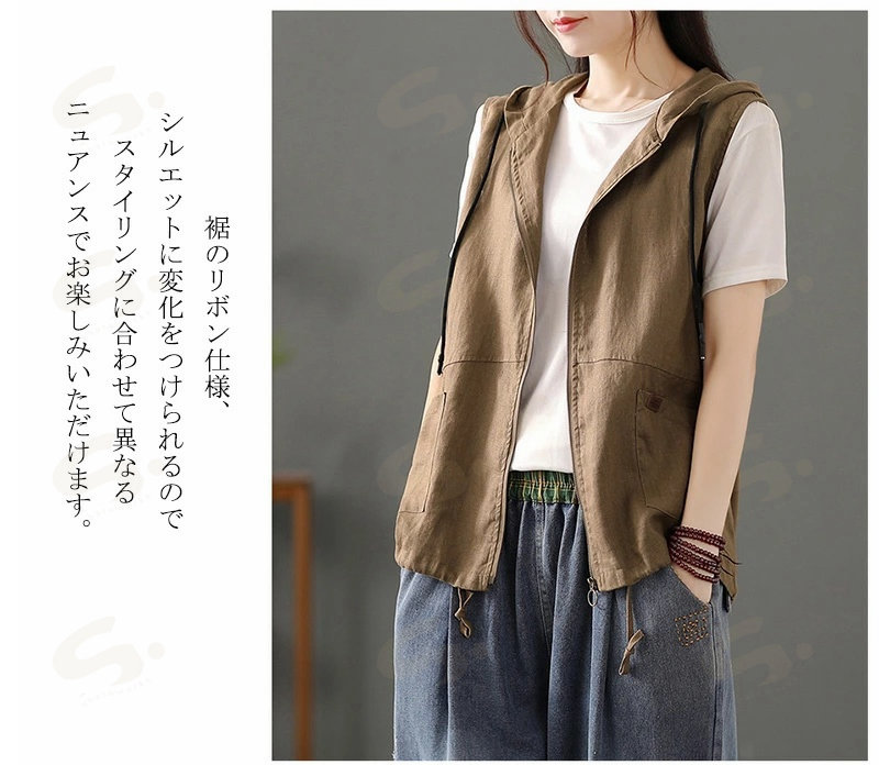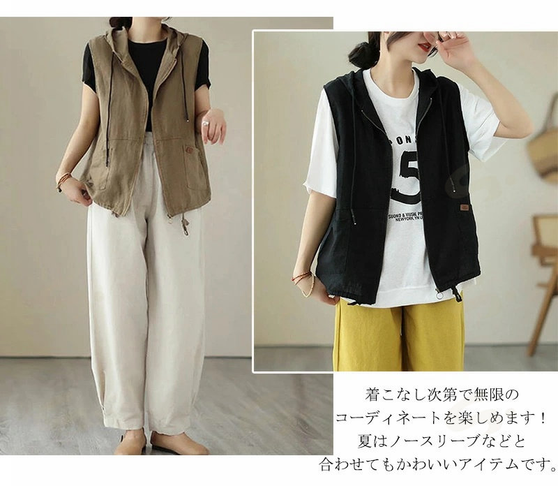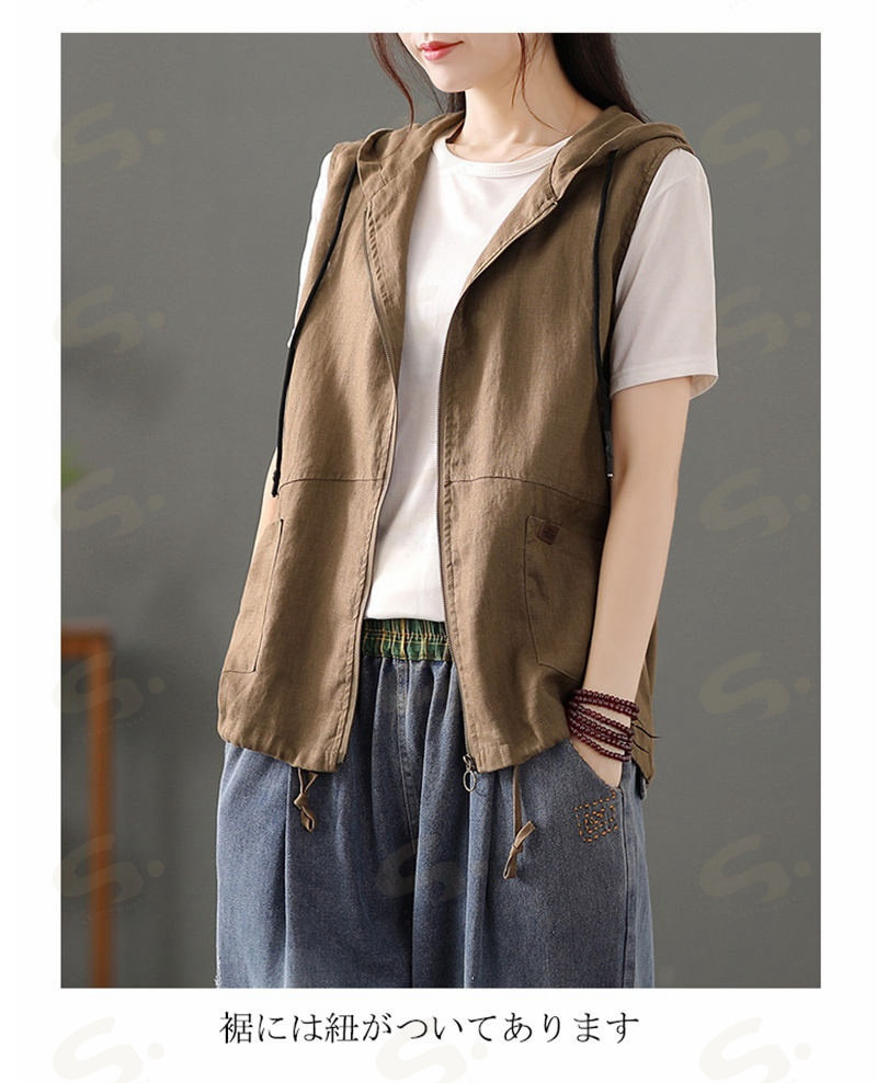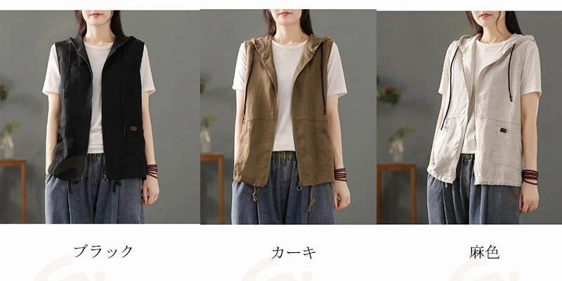 ベスト ジレ レディース 綿麻 リネン レディースファッション 豊富 ブラック カーキ 麻色 M L XL 2XL