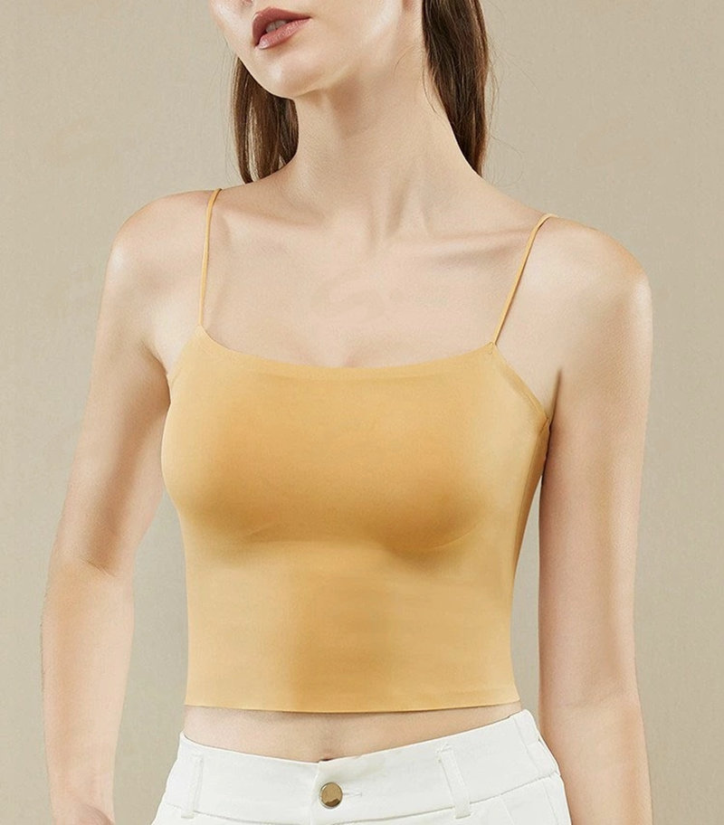 ブラキャミ 接触冷感 ブラトップ 涼感 キャミソール シームレス カップ付きタンキャミ Uネック 肌に柔らか ノンワイヤー 暑さ対策 涼しい UVカット 下着 兼用 ナイトブラ カッ 夜昼