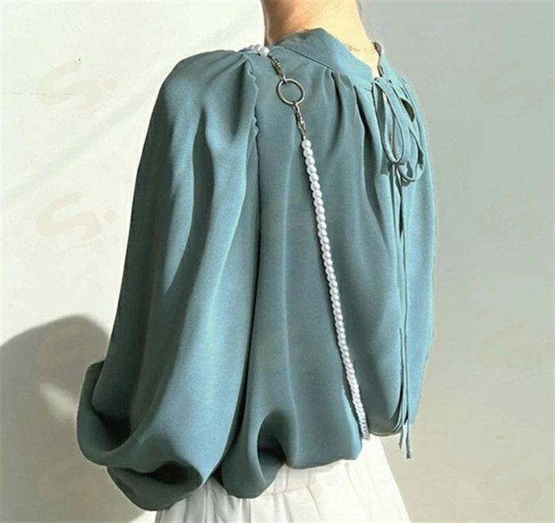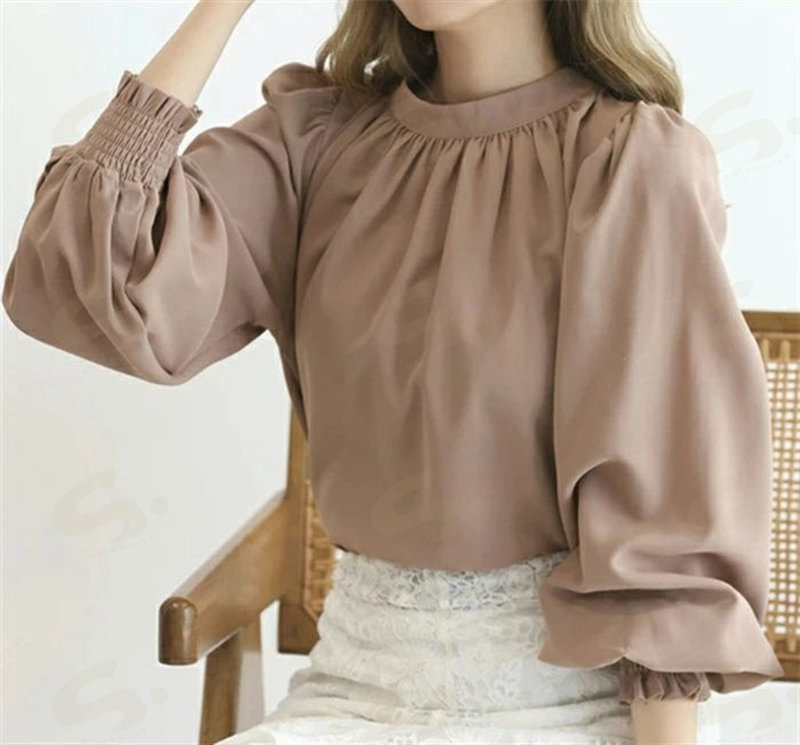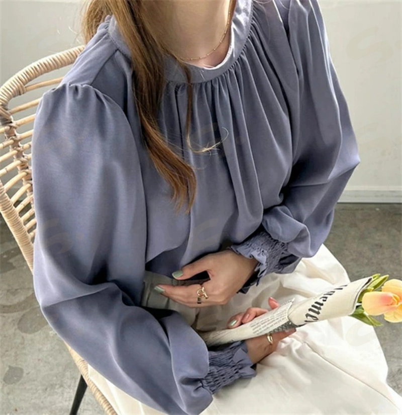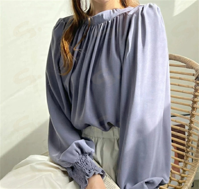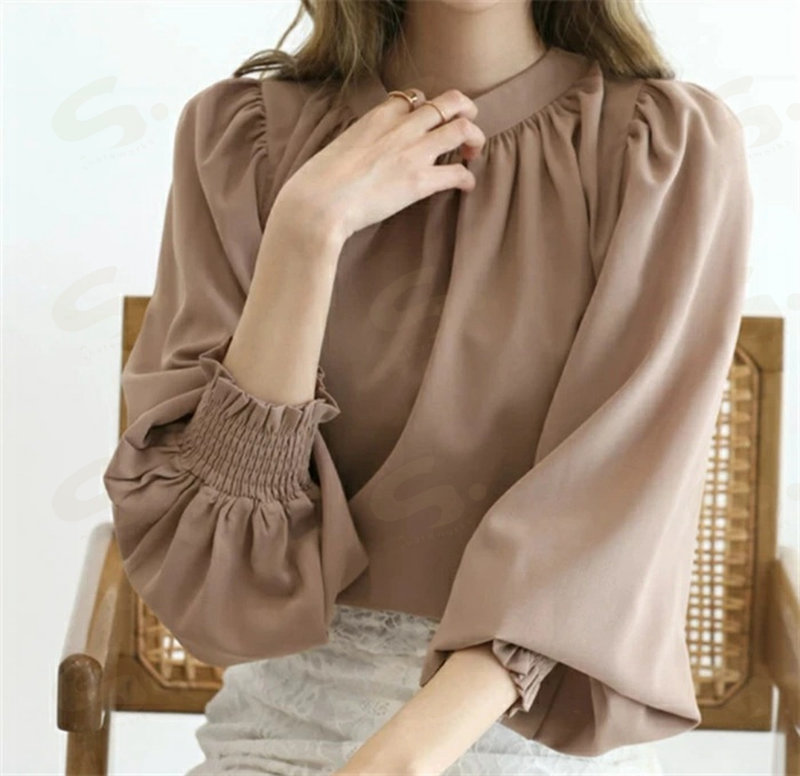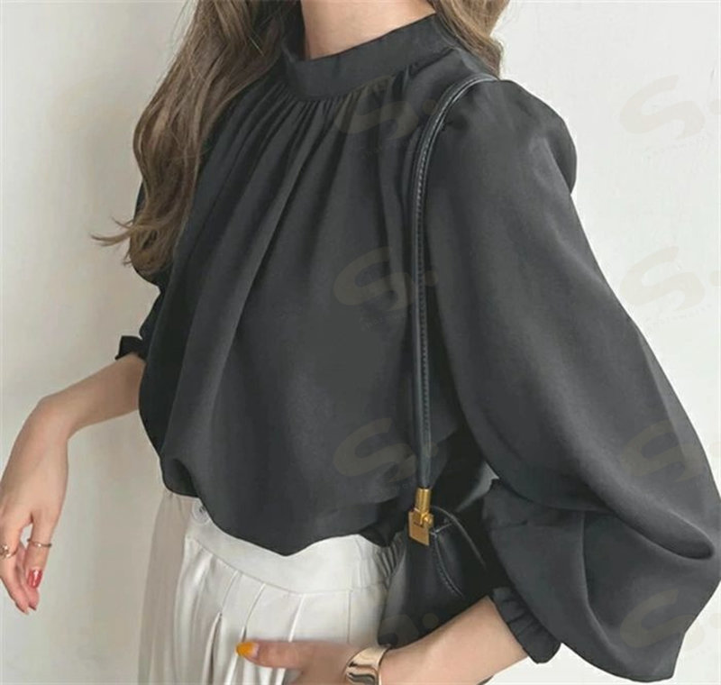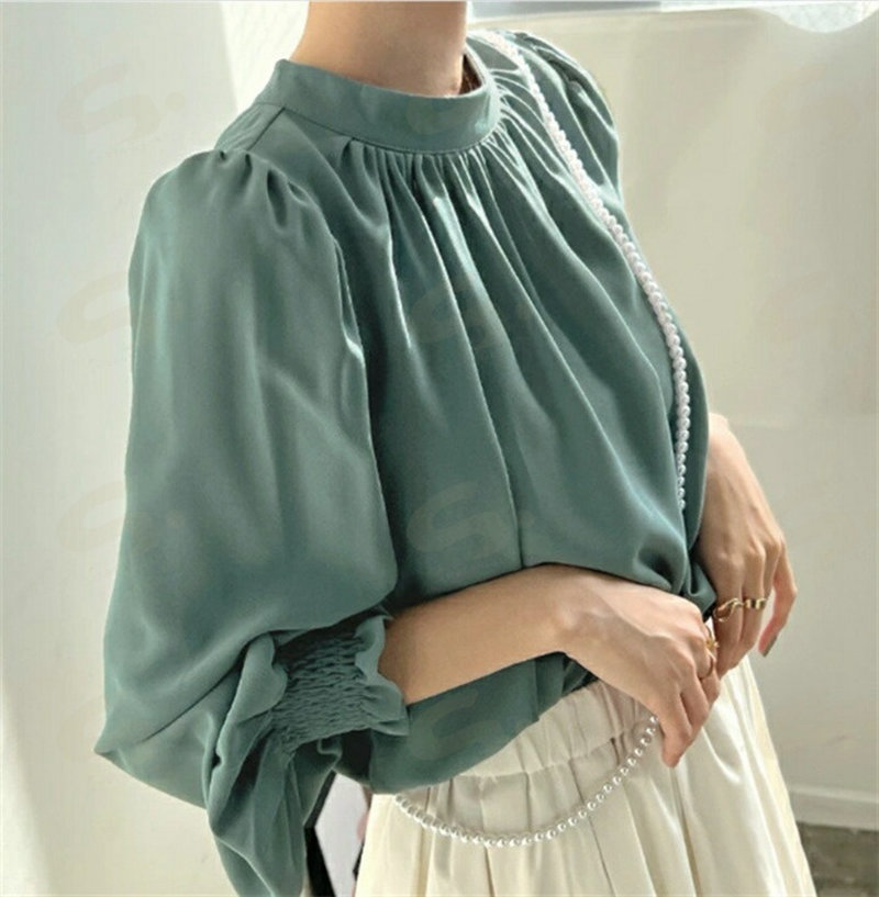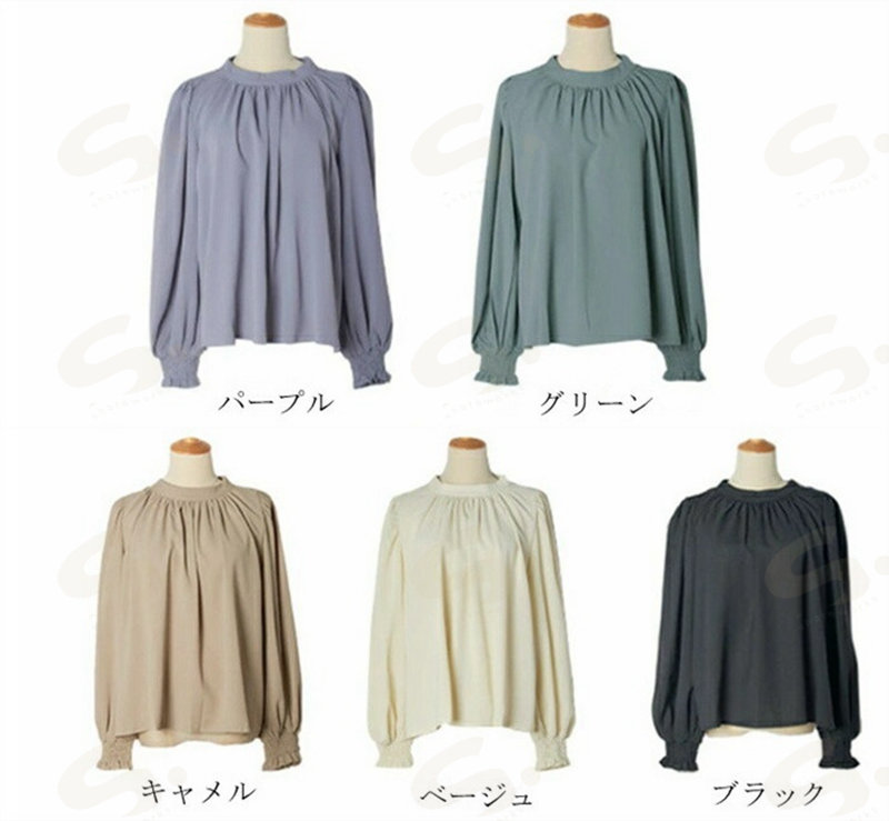 シフォンシャツ ブラウウ レディース シャツブラウス シャツ シフォン 長袖 ハイネック パフ袖 無地 トップス 韓国風 ゆったり 体型カバー 二の腕カバー きれいめ 着 オフィス 通勤OL フォ せ