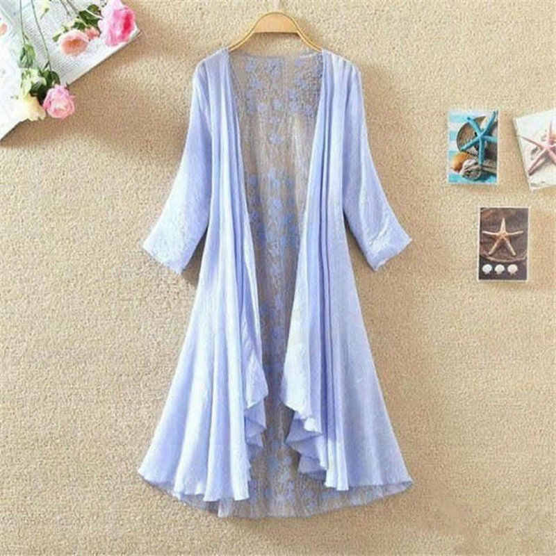 ロングカーディガン レディース レース UVカット 紫外線対策 冷房対策 前開き 夏 シフォン 大きいサイズ リゾート フレア 薄手 上着 おしゃれ 20代 30代 40代 羽織り
