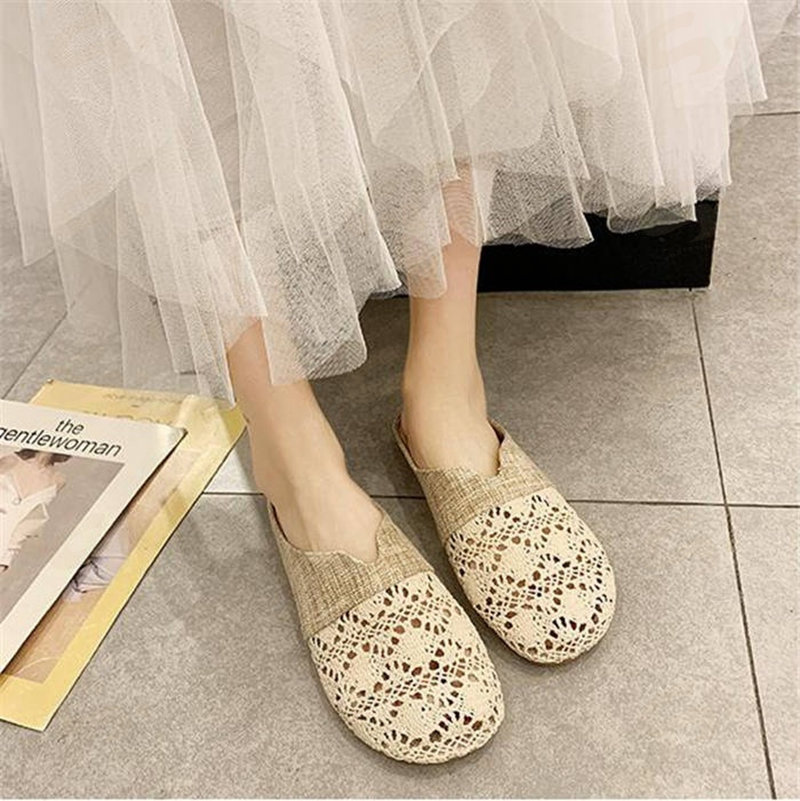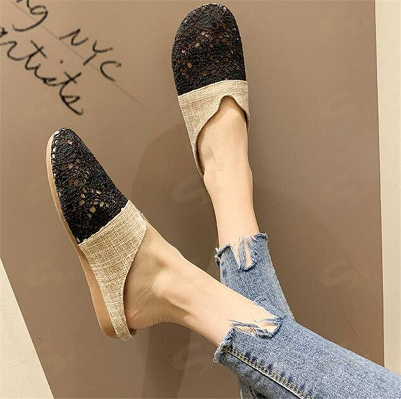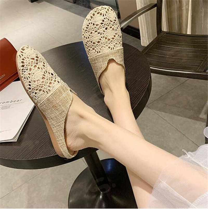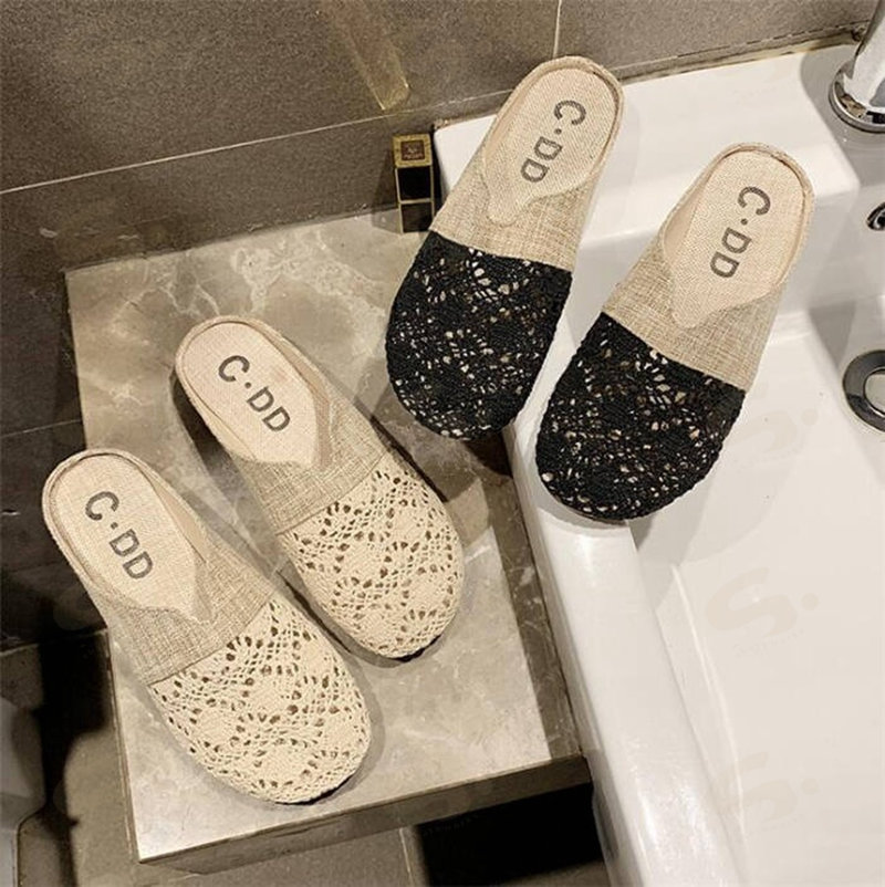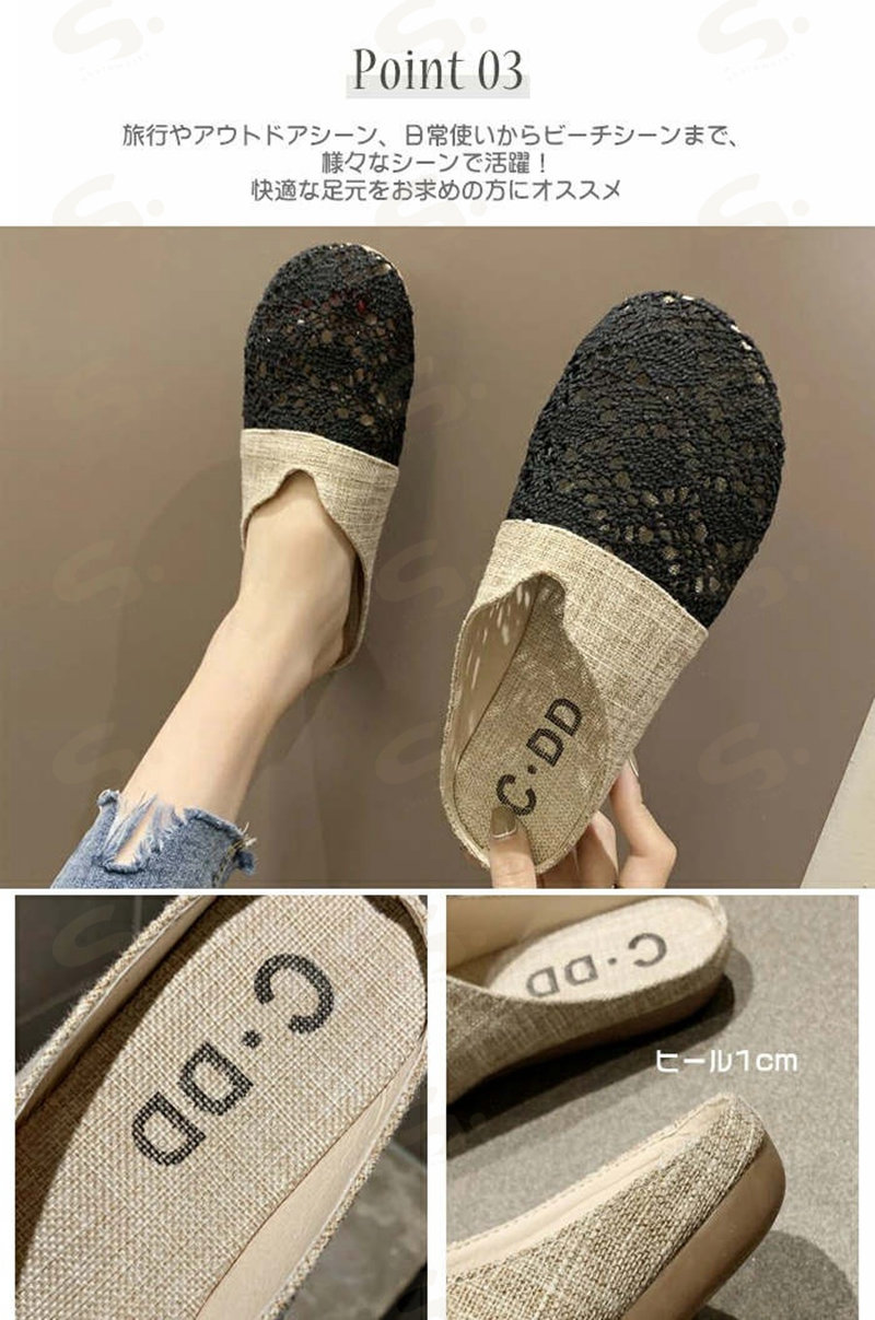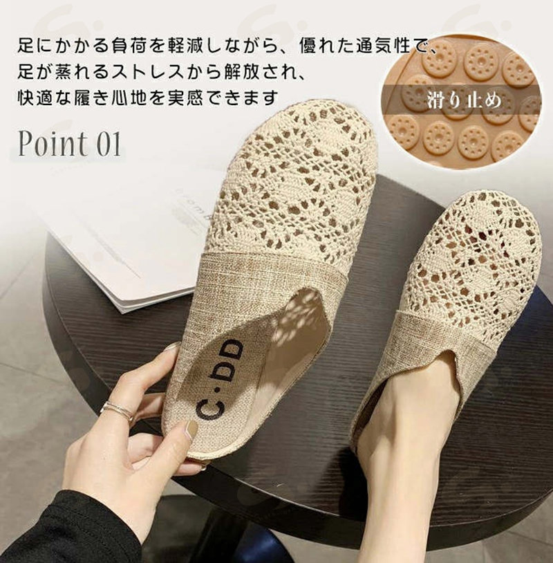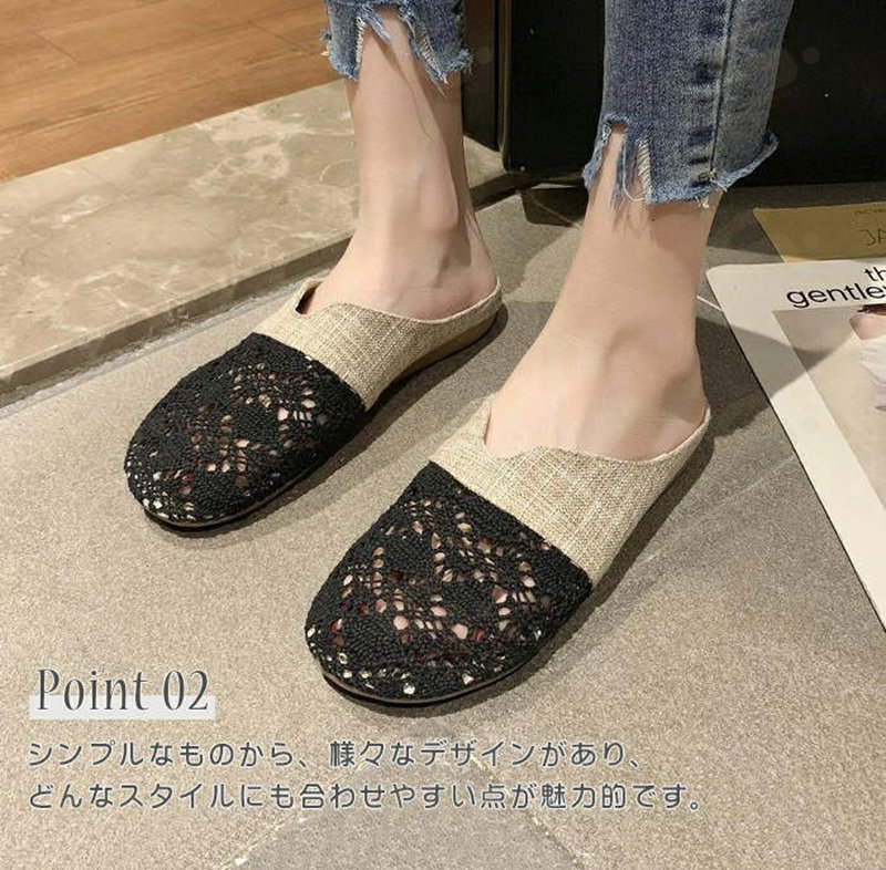 サボサンダル メッシュサンダル スリッパ 夏用 麻 ルームシューズ レース 来客用 レディース ぺたんこ クロシェ編み お洒落 花柄 刺繍 フラットサンダル 通年可 ベージュ 履きやすい シンプル 黒