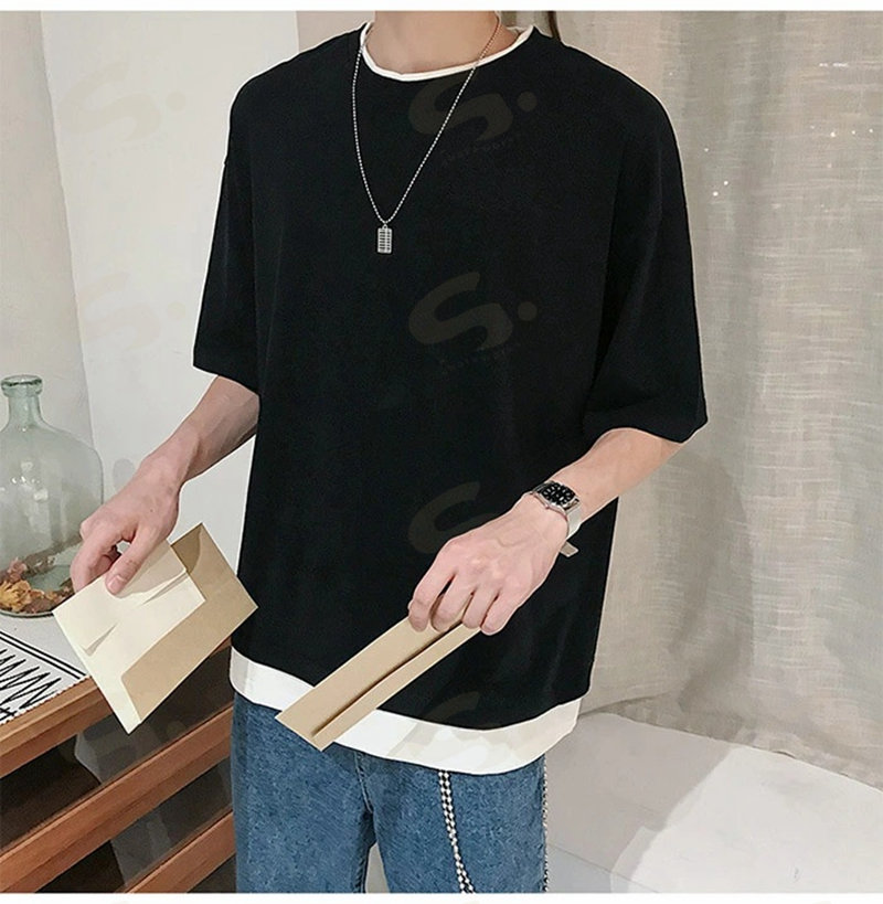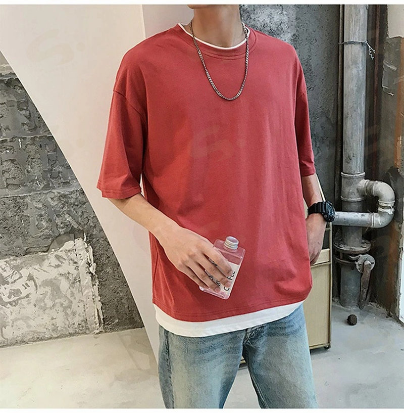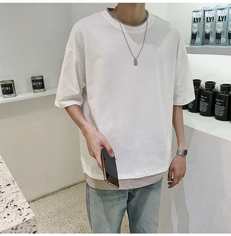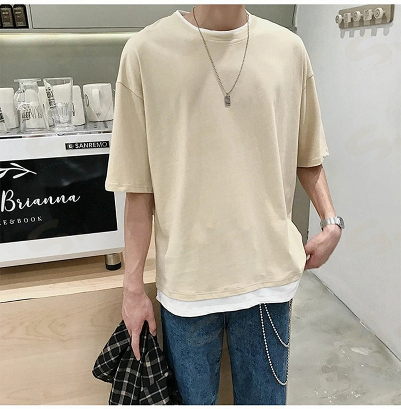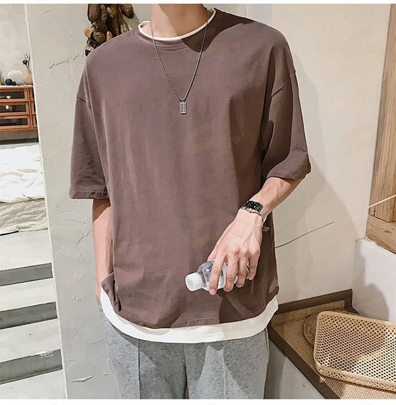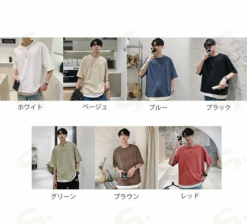 Tシャツ メンズ 半袖 ティーシャツ クルーネック トップス 丸首 プルオーバー 重ね着Tシャツ 重ね着風 カジュアルTシャツ 半袖Tシャツ 春夏新作 ペアルック カジュアル 夏服 通勤 無 ゆったり
