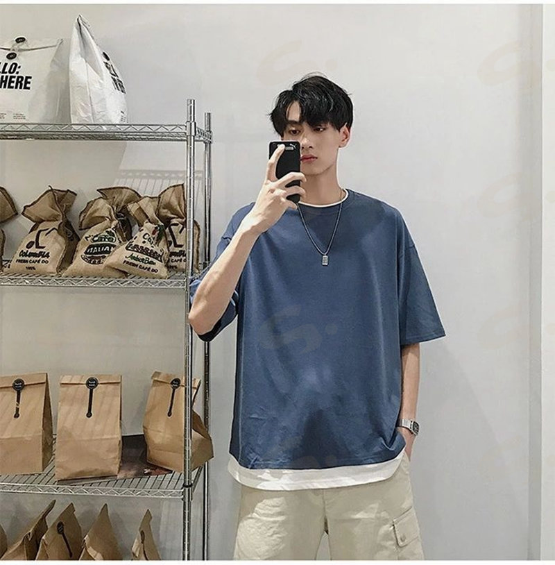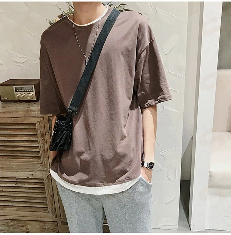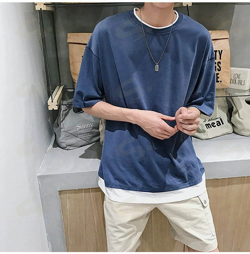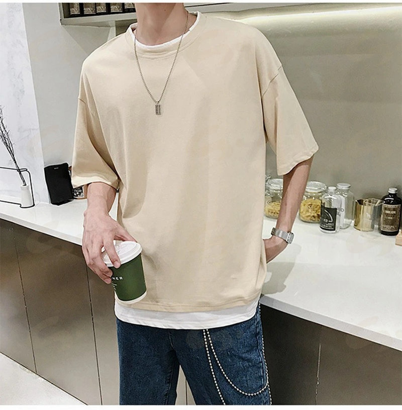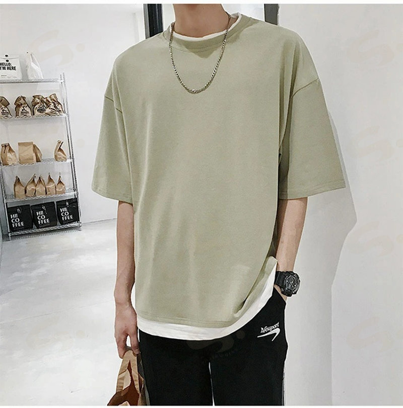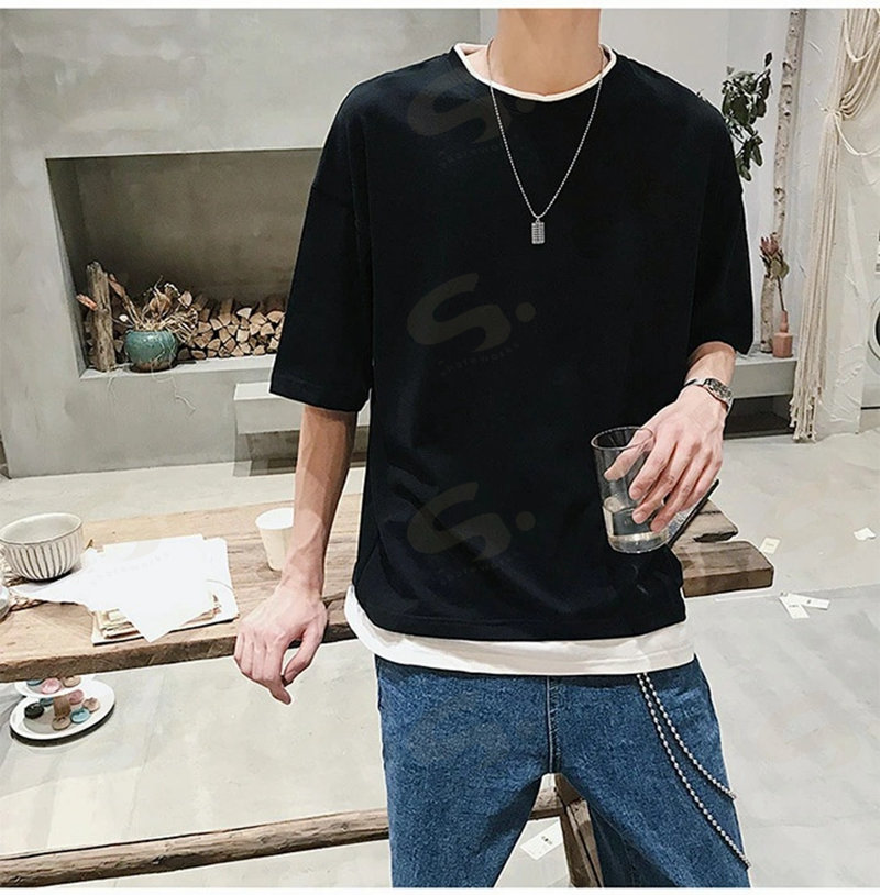 Tシャツ メンズ 半袖 ティーシャツ クルーネック トップス 丸首 プルオーバー 重ね着Tシャツ 重ね着風 カジュアルTシャツ 半袖Tシャツ 春夏新作 ペアルック カジュアル 夏服 通勤 無 ゆったり