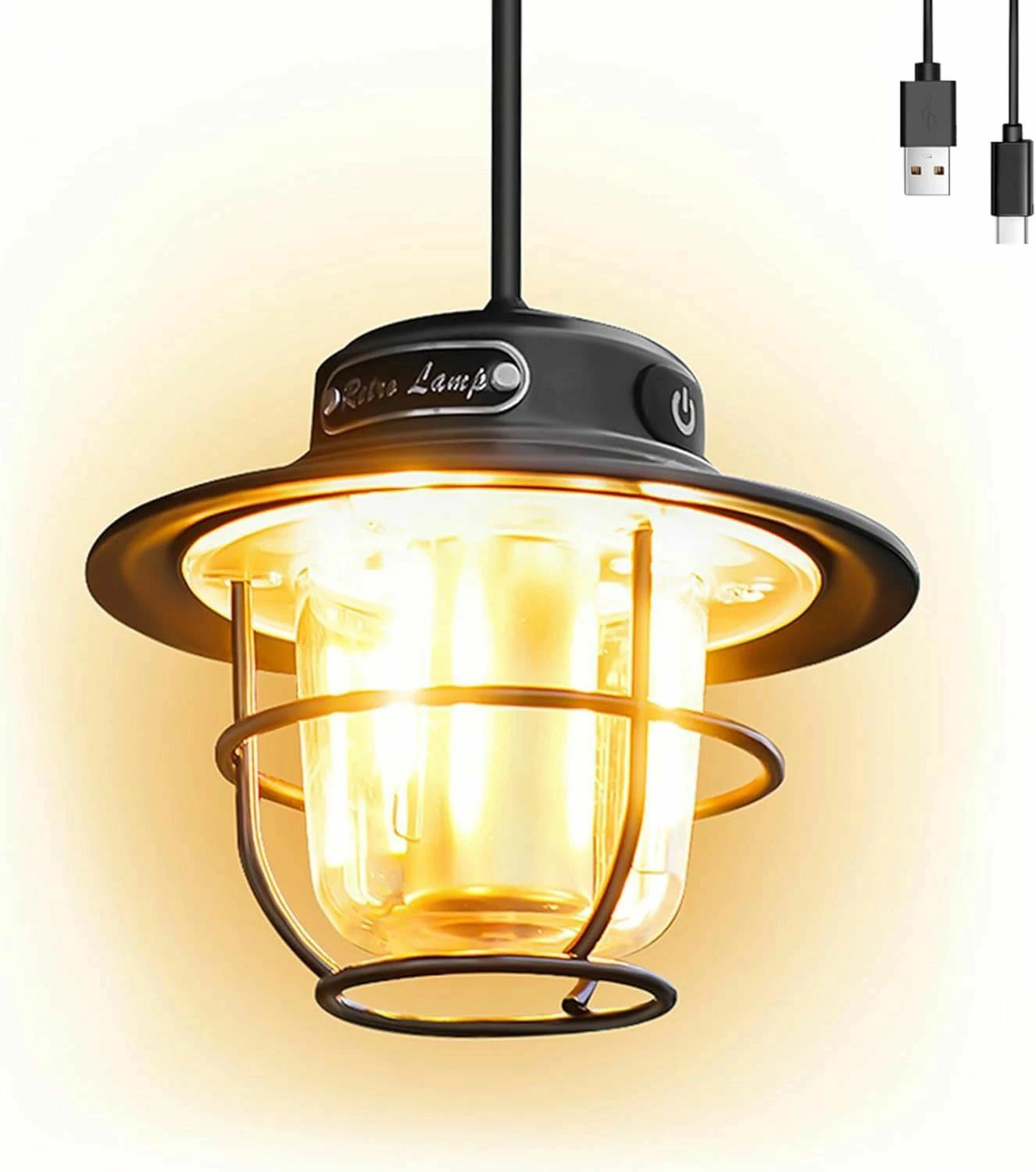 キャンプランタン 【充電式 レトロ キ 超高輝度1000ルーメン ャンプライト ポータブル 防水 4つのライトモード (1300-6500K) 無段階調光明】るさ キャンプ ハイキング 緊急防災 停電 緊急 非常用 釣りなどに