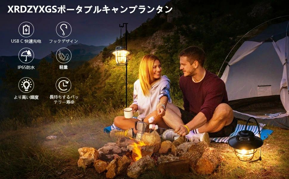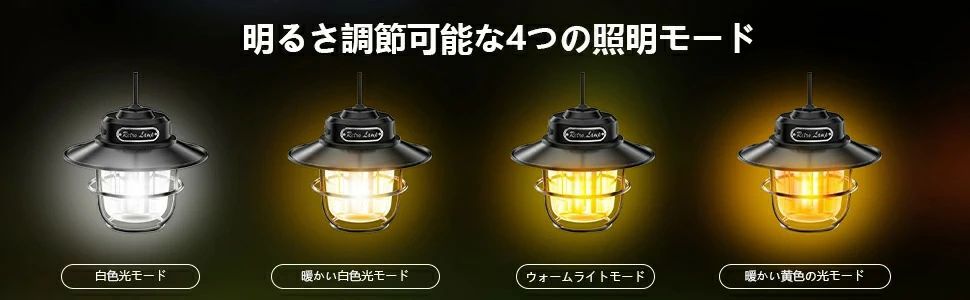 ポータブル 4つのライトモード 超高輝度1000ルーメン レトロ ャンプライト キ 防水 充電式 無段階調光明