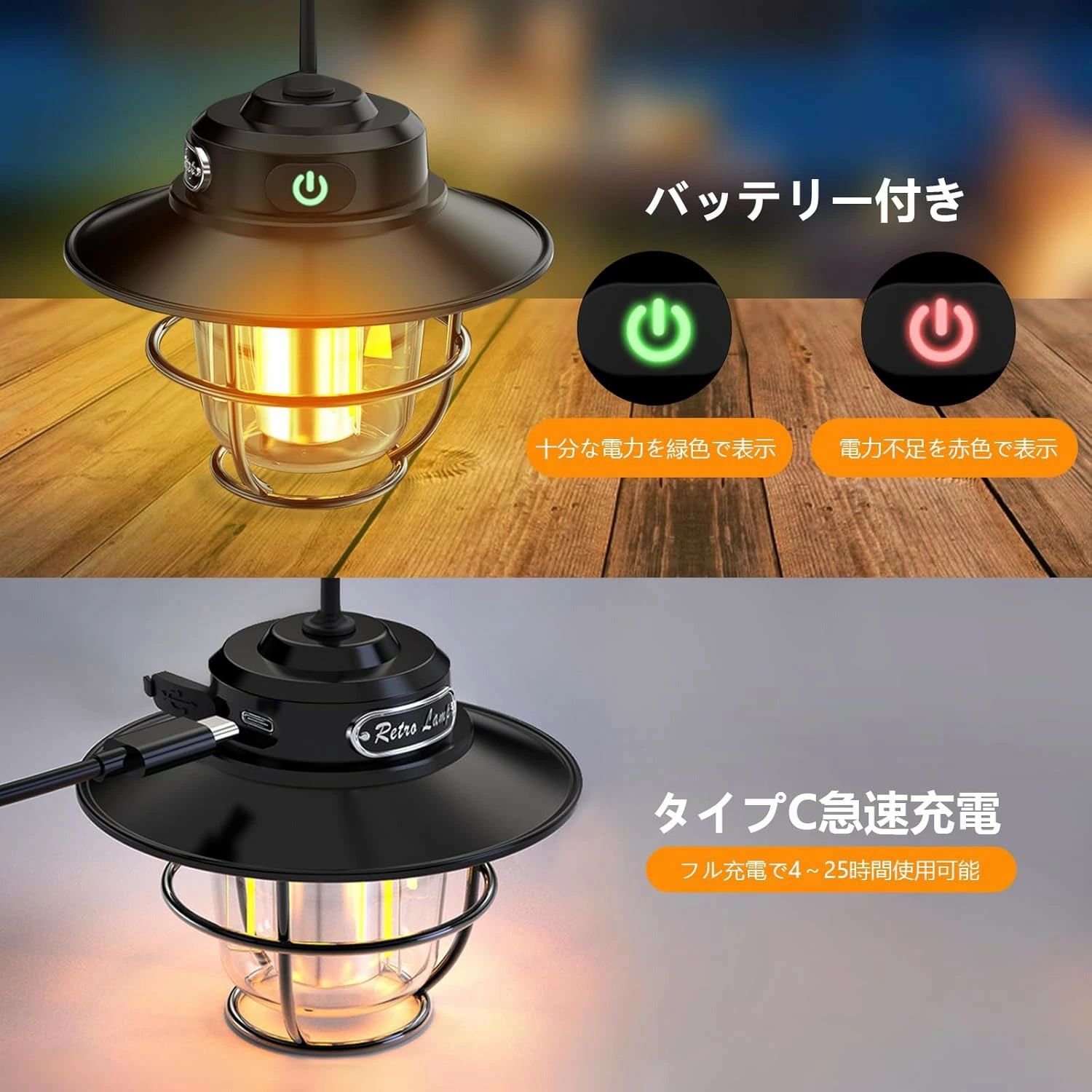 LED ランタン USB-C充電式 レトロ