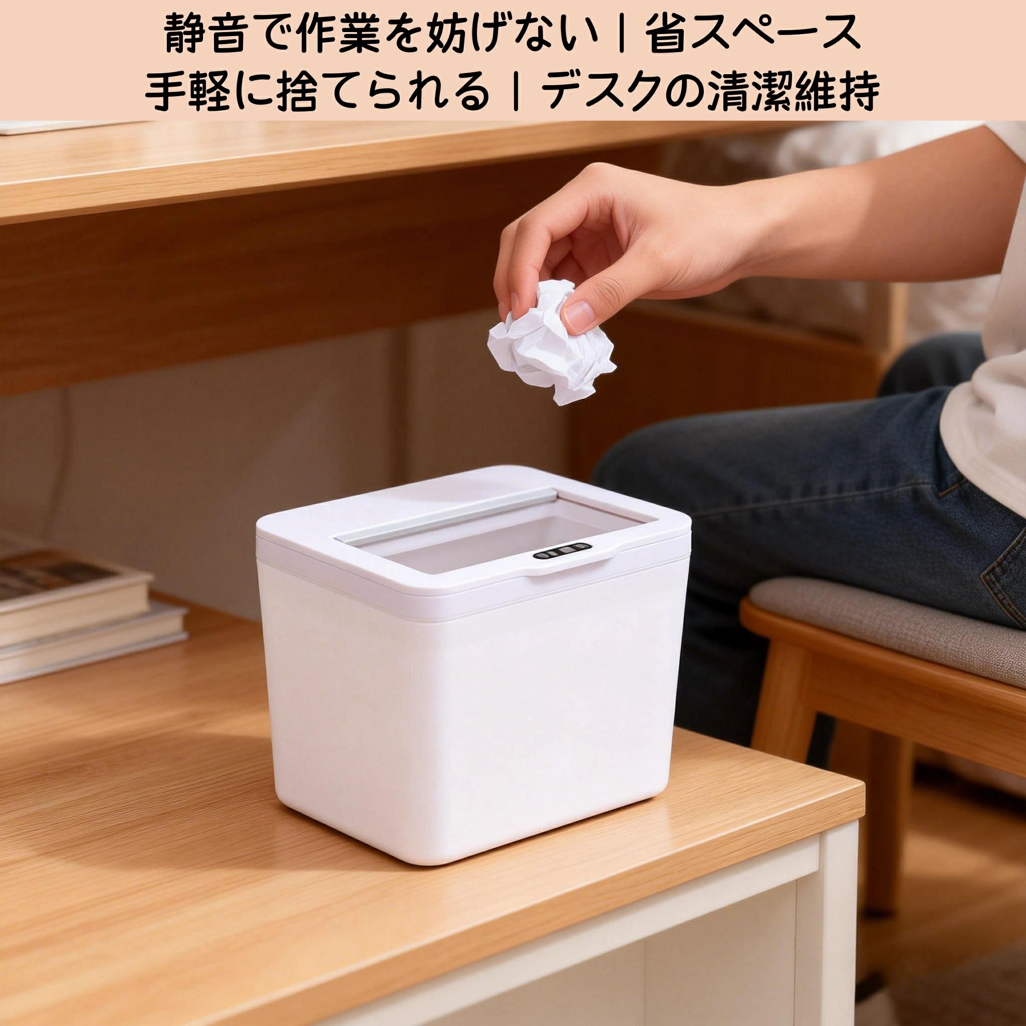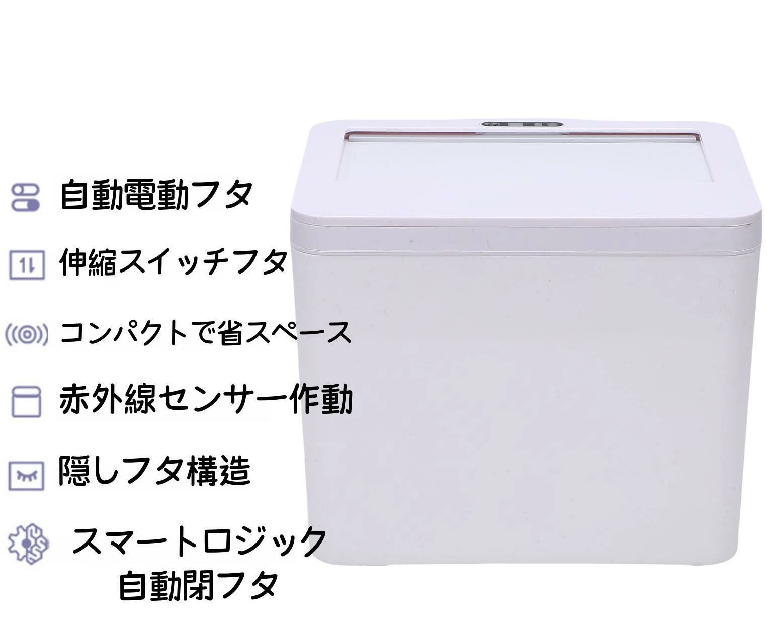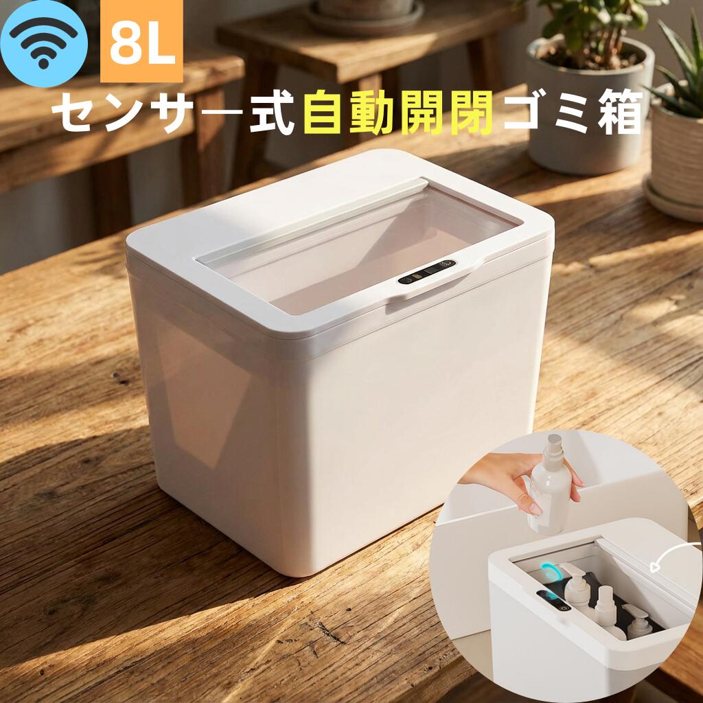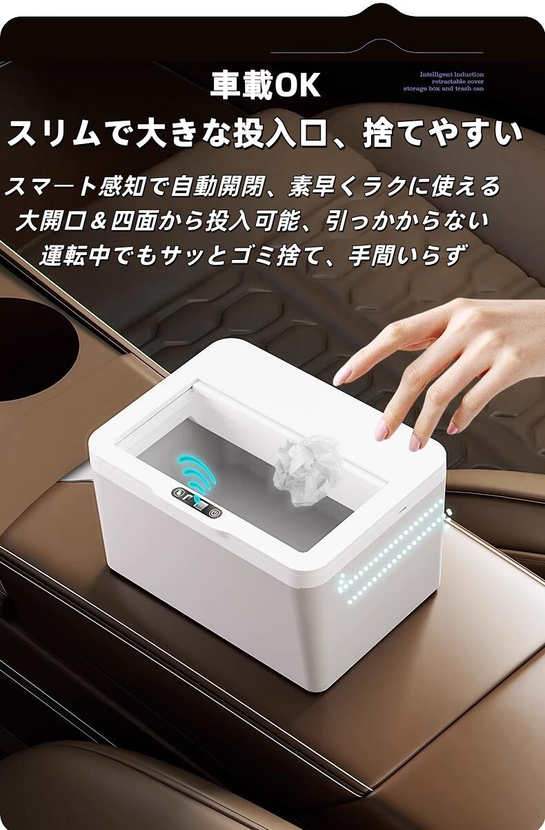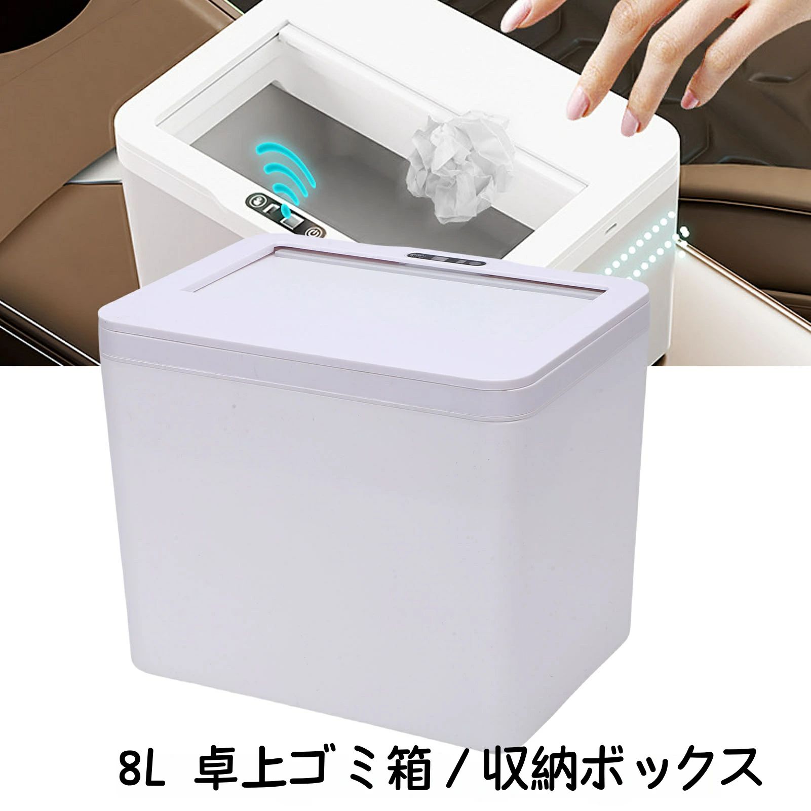 センサー スマートゴミ箱 8L ホワイト 車載|車内 洗面所 トイレに省スペース設置|フタ付きでニオイ対策 デスク