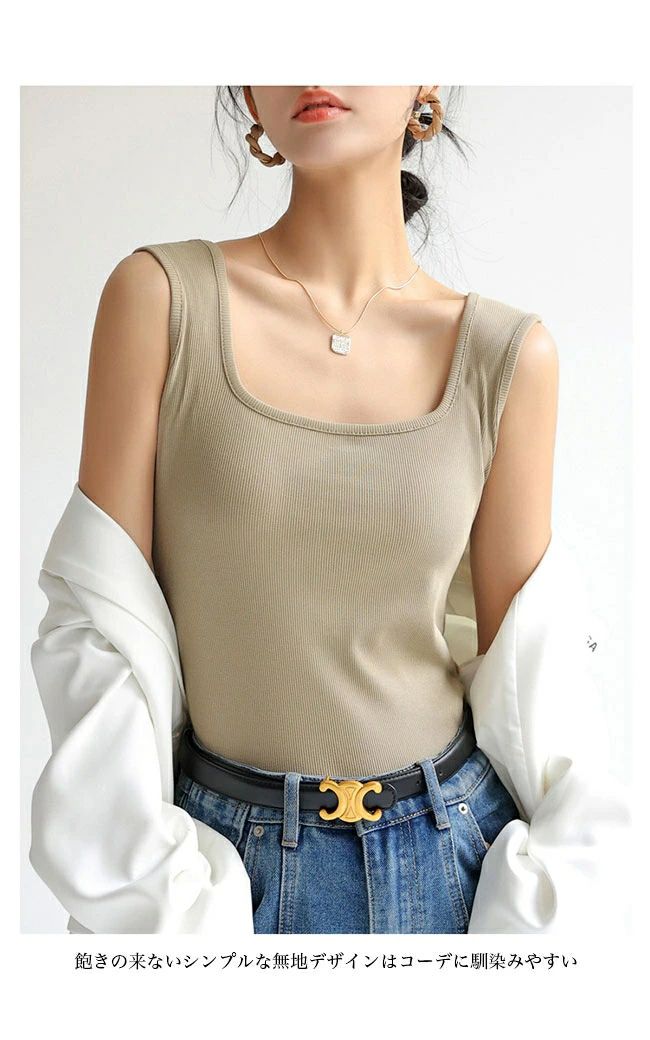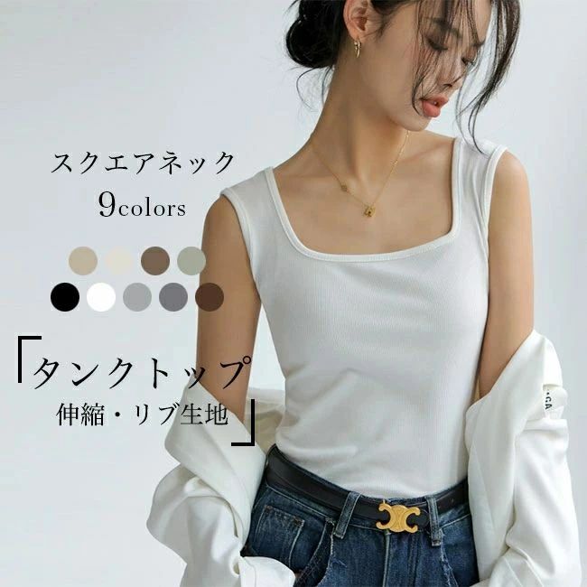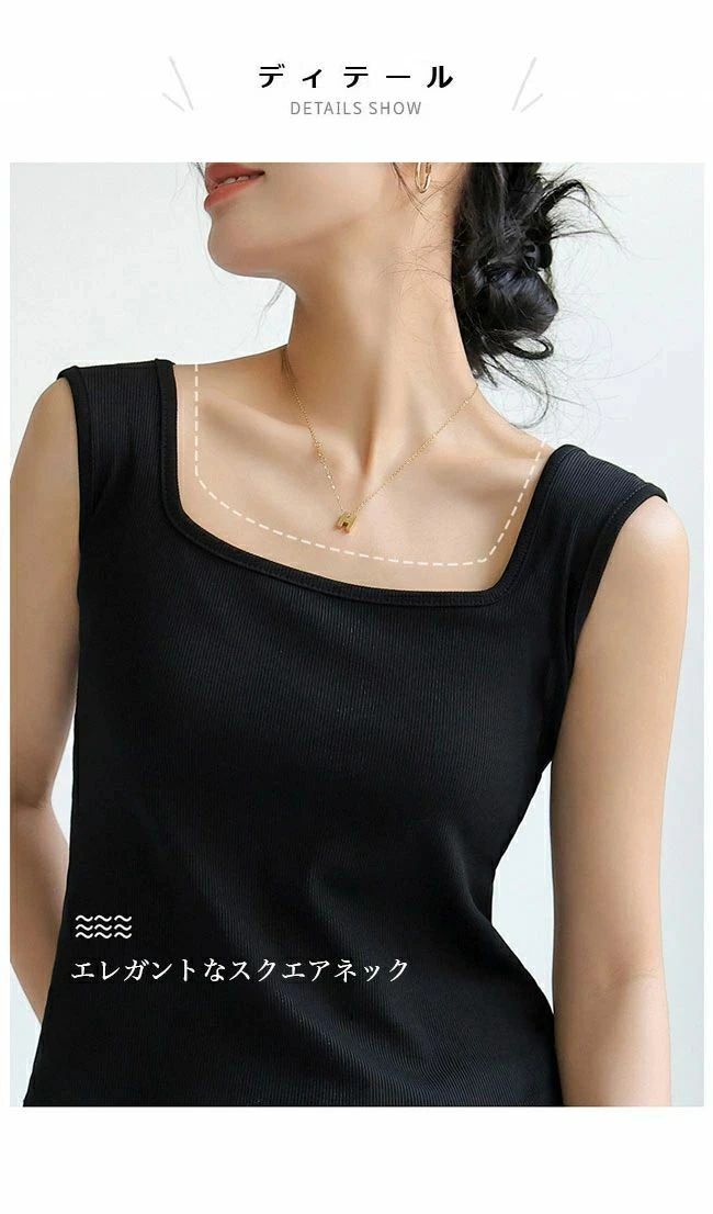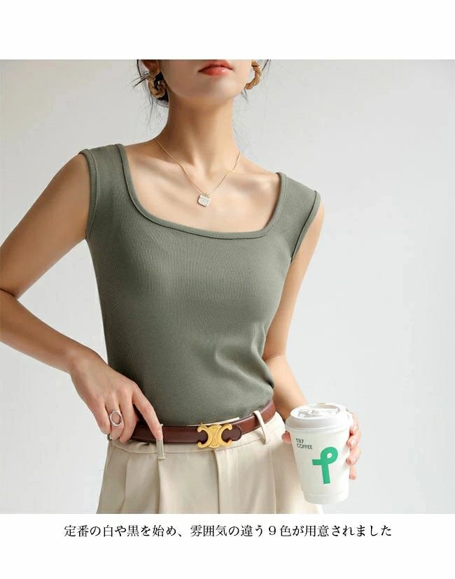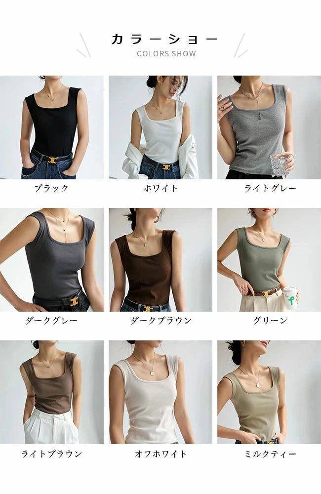 タンク レディース スクエアネック ス ブラック ホワイト ライトグレー ダークグレー ダークブラウン グリーン ライトブラウン オフホワイト ミルクティー S M L XL