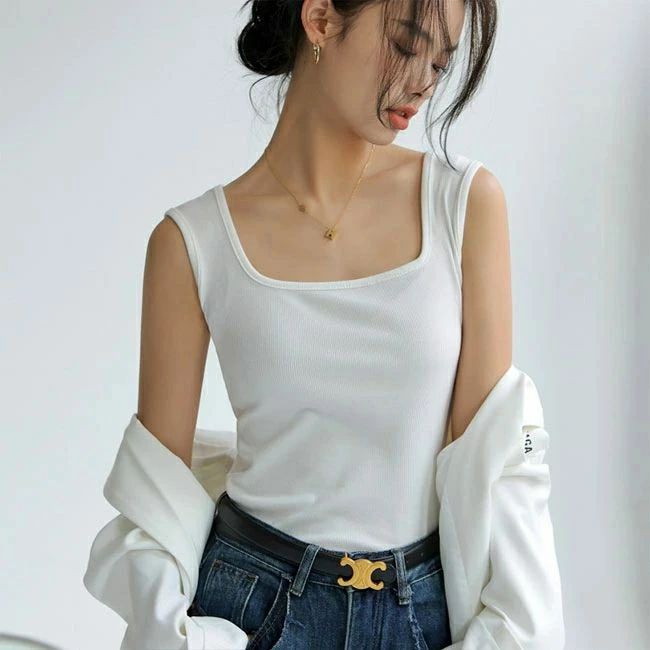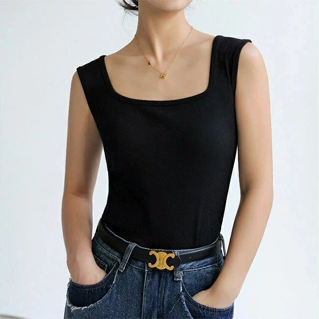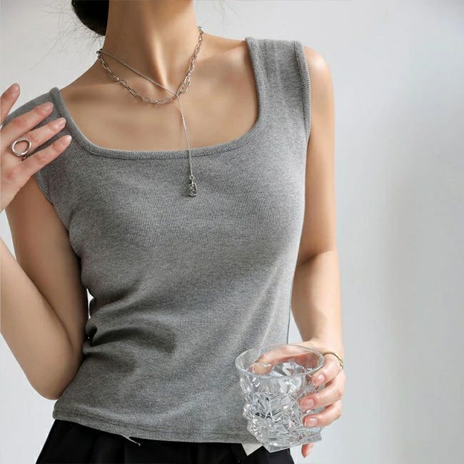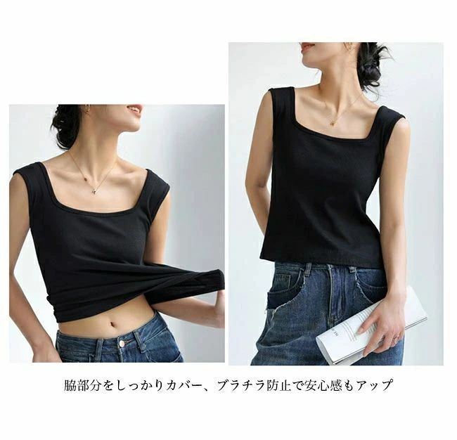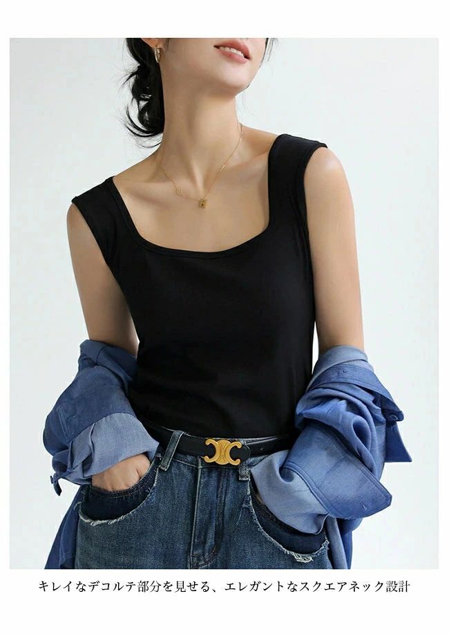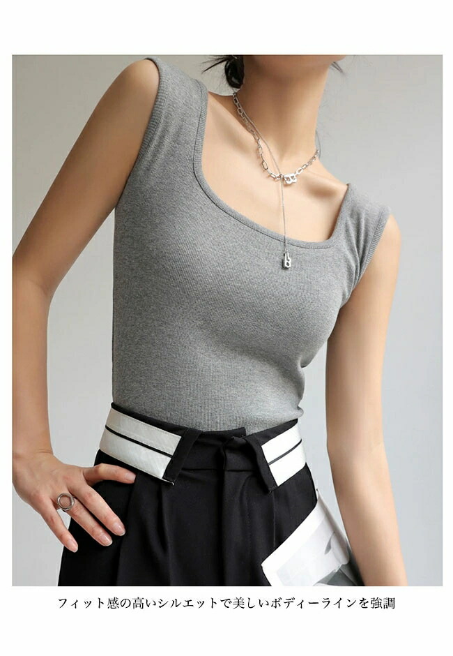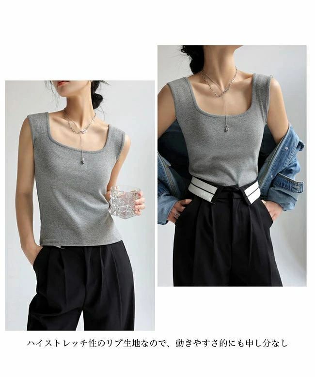 タンク レディース スクエアネック ス ブラック ホワイト ライトグレー ダークグレー ダークブラウン グリーン ライトブラウン オフホワイト ミルクティー S M L XL