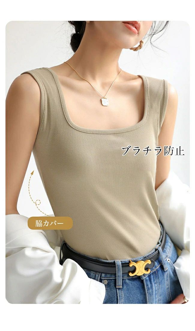 タンク レディース スクエアネック ストレッチ ス 夏 薄手 ノースリーブ ブラチラ防止 伸縮 細身 スクエアネッ リブタンク