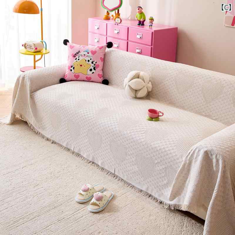 ソファカバー マルチカバーハート柄ジャ A:草の緑 B:カーキ C:クリーム色 D:黒 E:白 F:グレー 90*90 90*150 90*180 130*180 180*180 180*230 180*260 180*300 180*340 180*380
