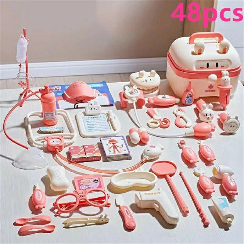 知 女の子 社会性 子供用 収納ケース おもちゃ ままごと ごっこ遊びトイ お医者さん 通販 ブルー ピンク 41点セット 48点セット