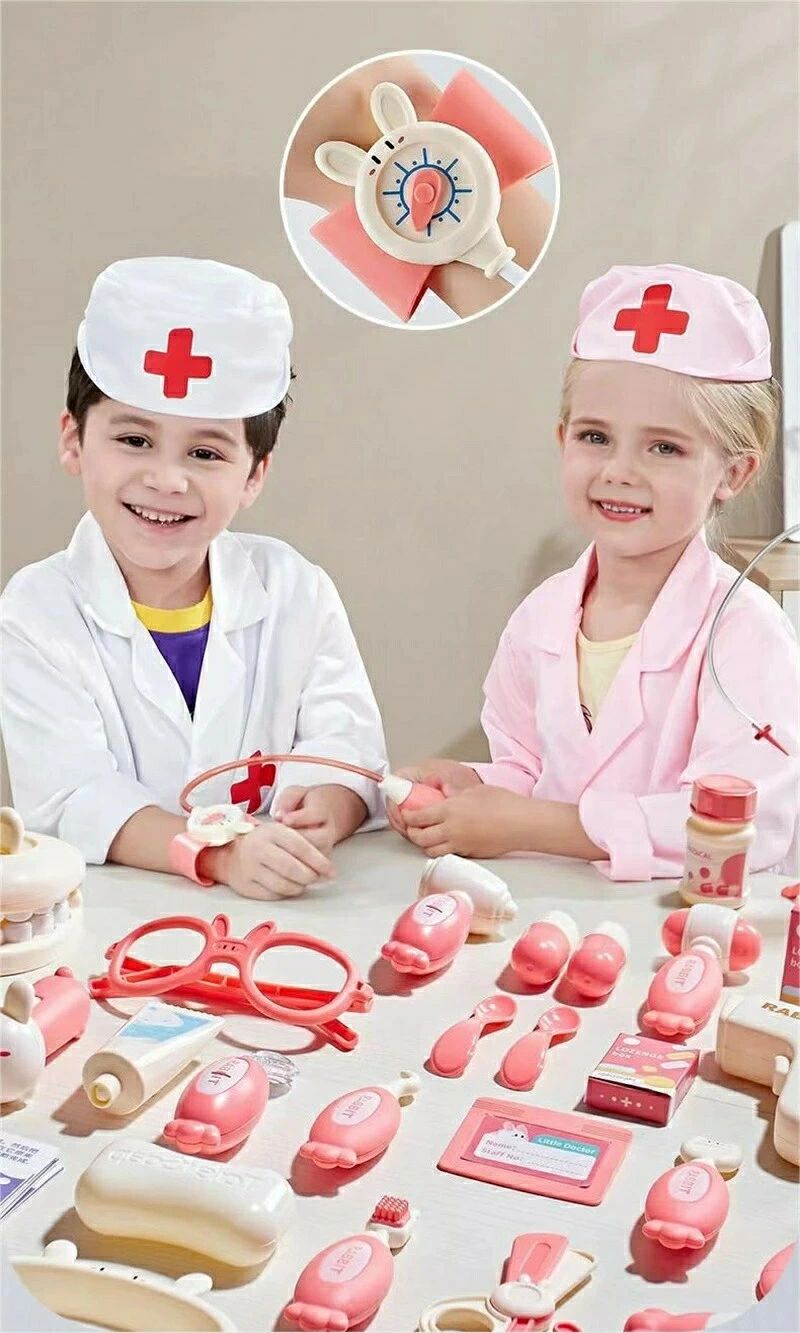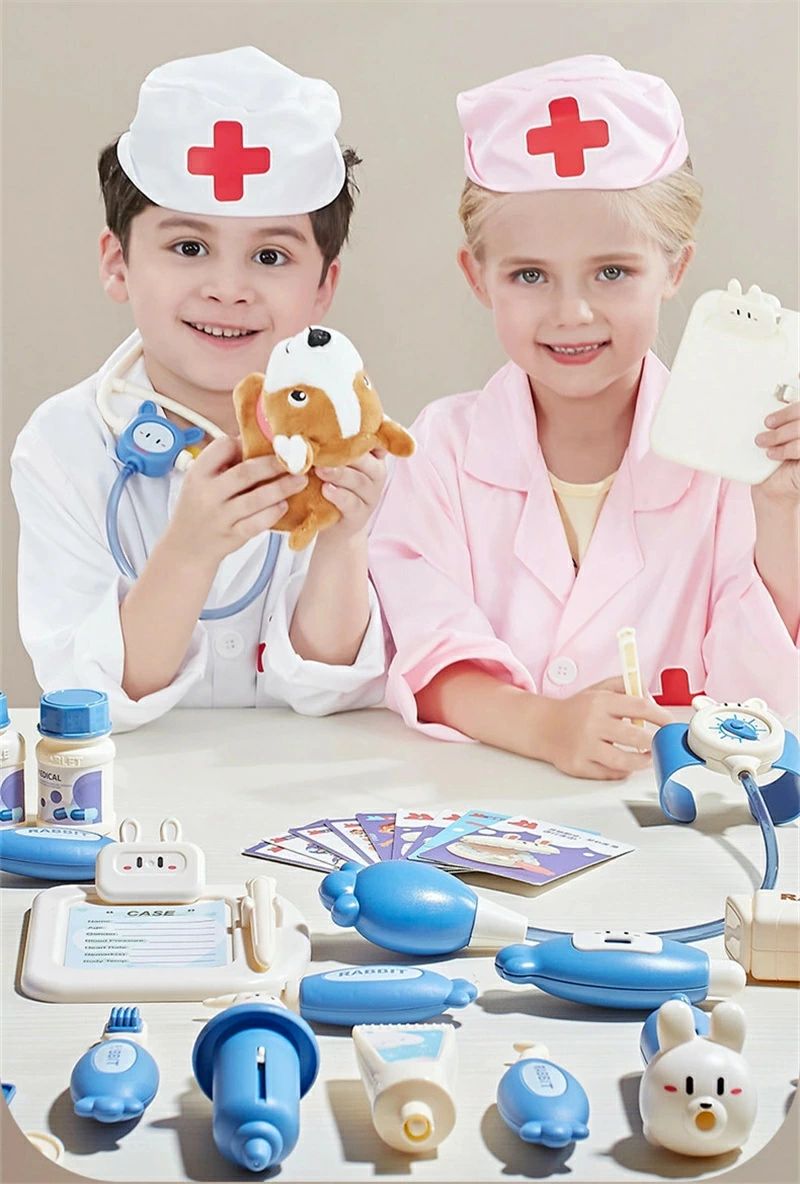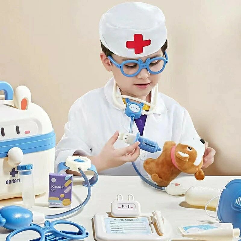 医師または看護師の真似をしながら、医療業界に関する子供の知識を向上させるのに役立ちます。そして健康知識を学び、認知を啓発し、ままごと遊び、更にコミュニケーションおよび手と脳の協調能力を発展させます。お子様が気持ちよく感じることの重要性を教え、自分や他の人への思いやりと思いやりを育てます。
