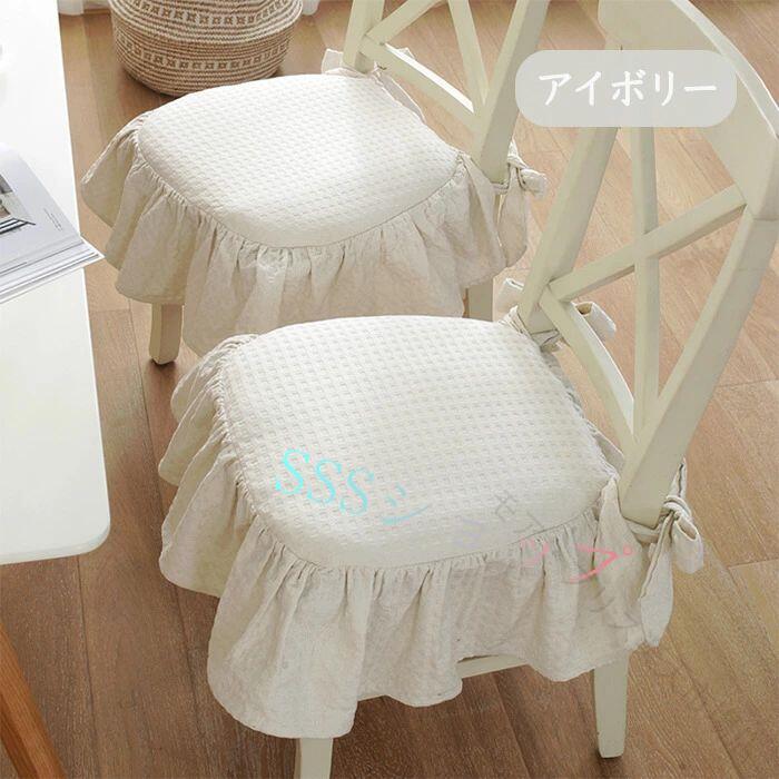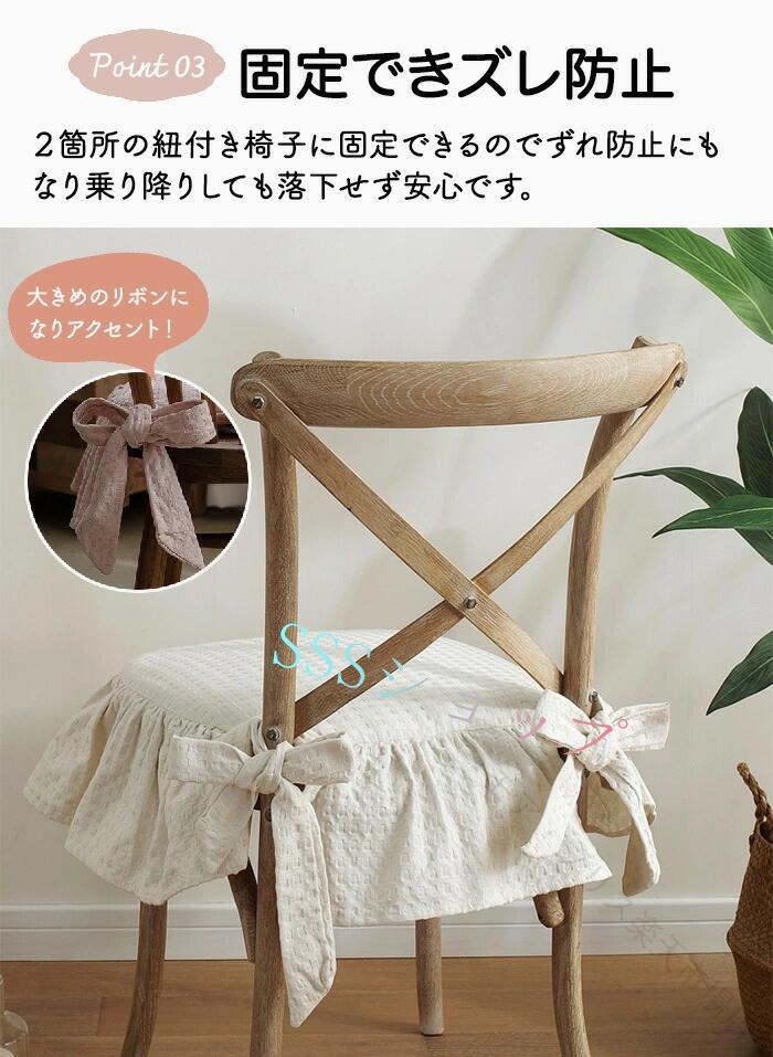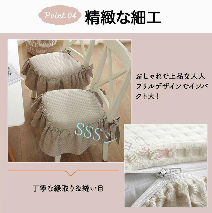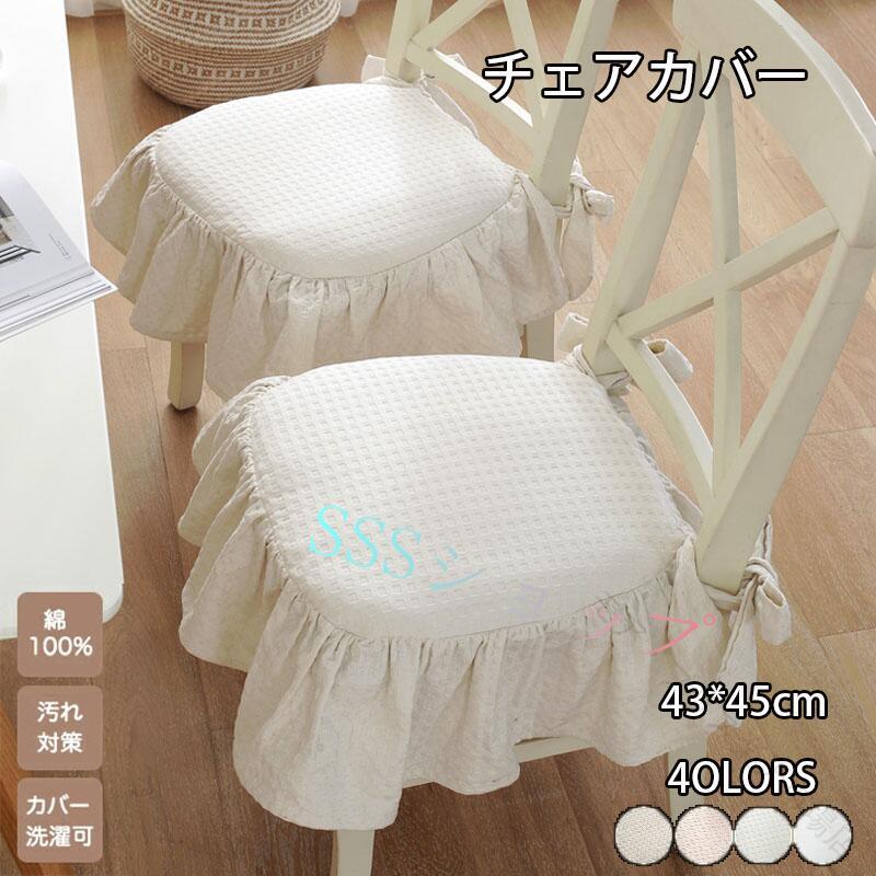 チェアカバー 椅子カバー フリル付き 厚手 クッションカバー 綿 コットン 家具カバー 北欧風 カフェ風 リビング ダイニング インテリア 通気性 四季通用 紐付き おしゃれ 柔らかい 洗 ずれにくい