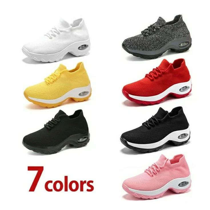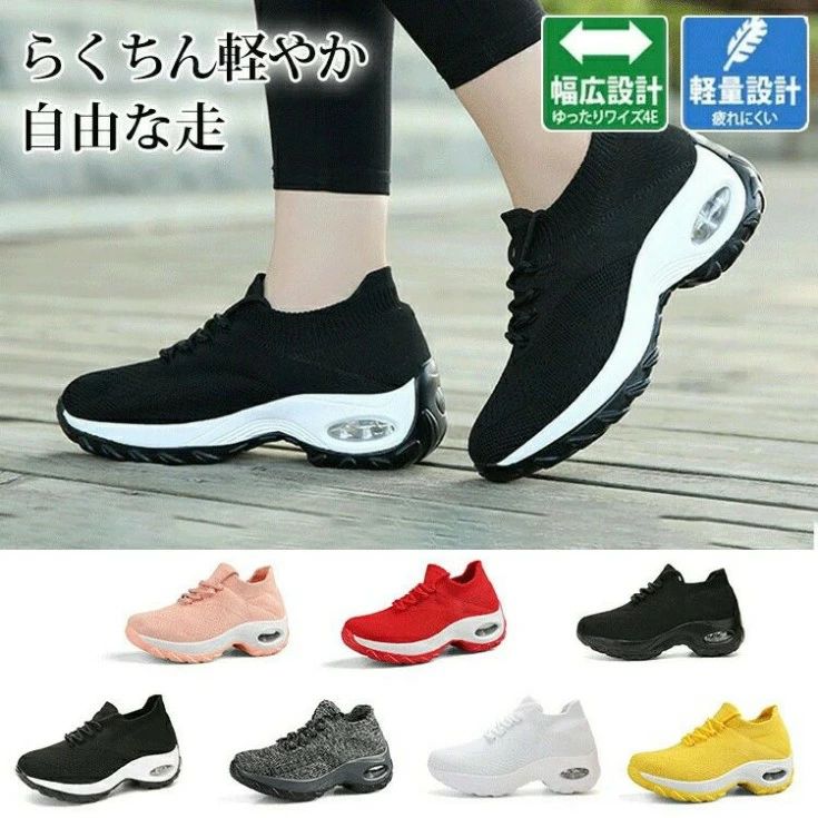 厚底スニーカー ストレッチカジュアル婦 レディース靴 スニーカー 通販 ホワイト イエロー レッド ピンク ブラックB ブラックA グレー 35 36 37 38 39 40 41