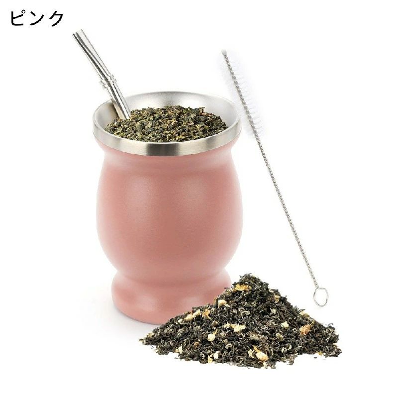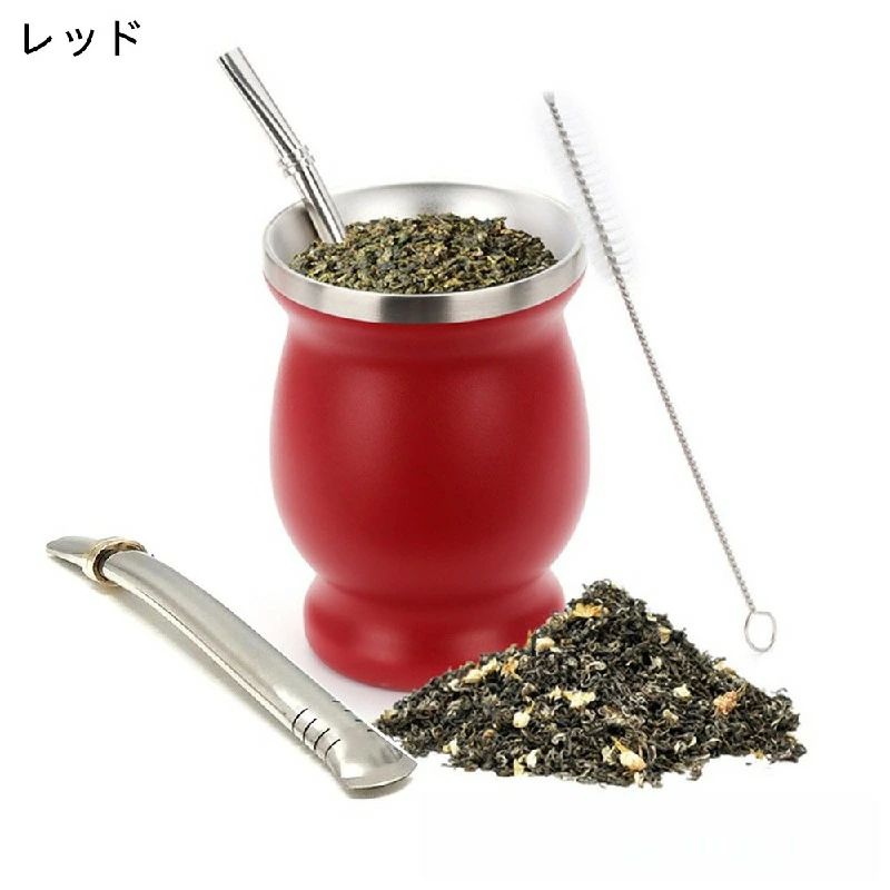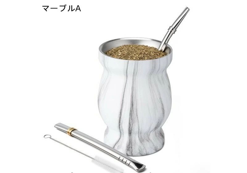 茶器セット ストロー付き マテ茶カップ キッチン用品 食器 調理器具 早い者勝ち ブラック レッド ピンク ブルー グリーン ホワイト 木目 マーブルA マーブルB グレー