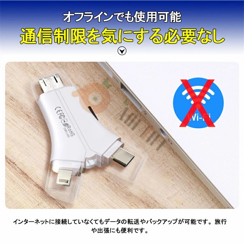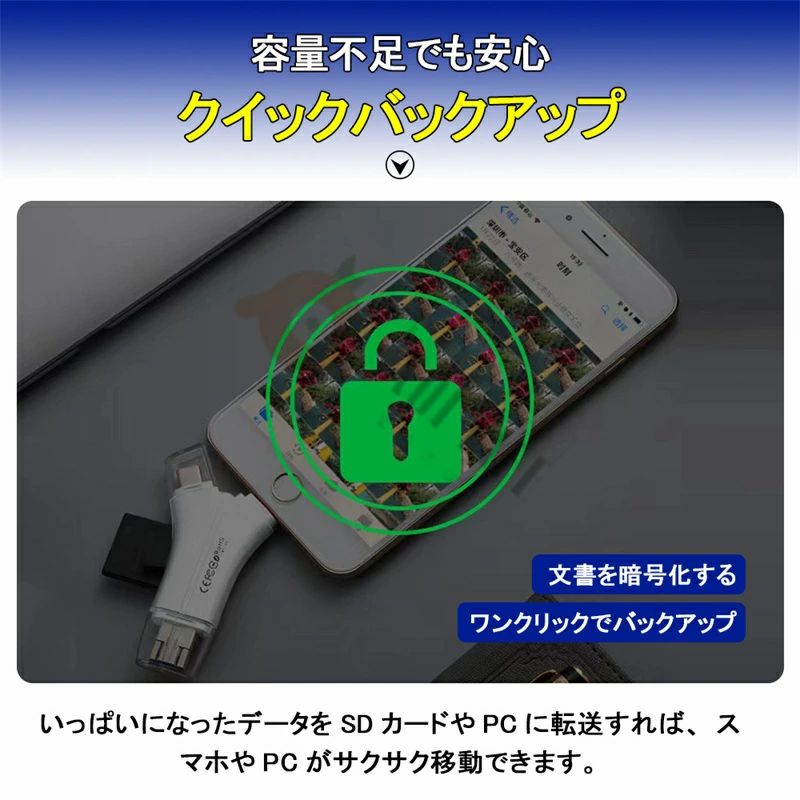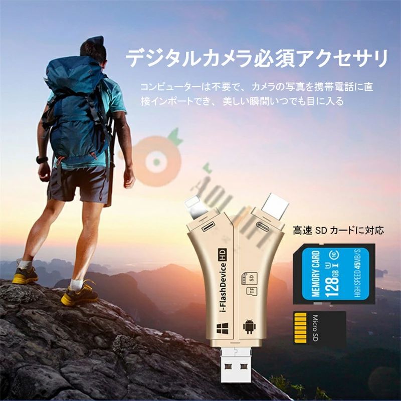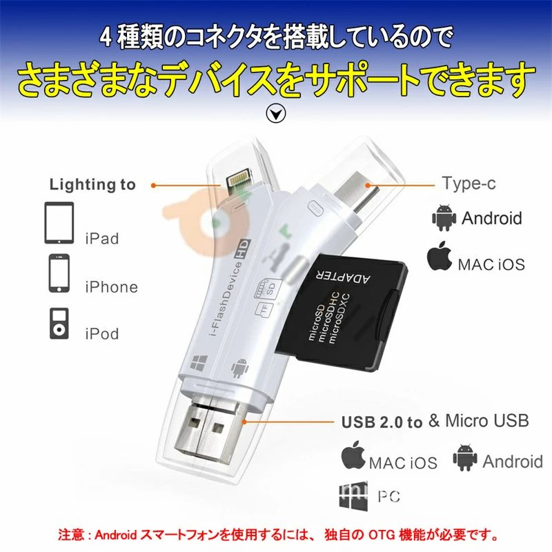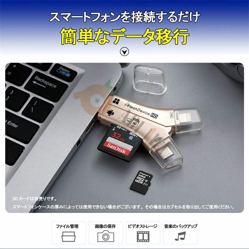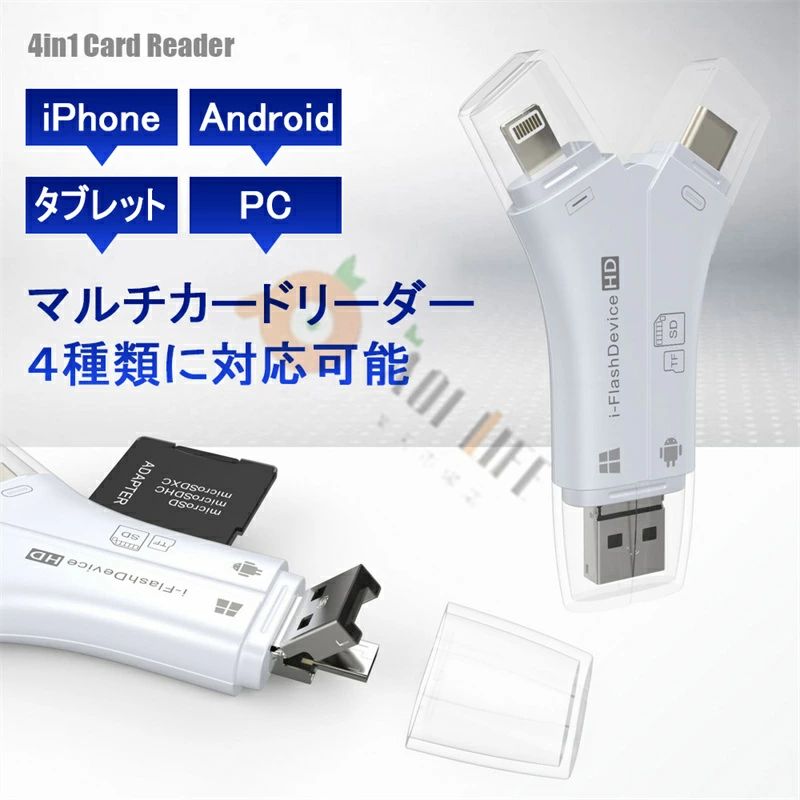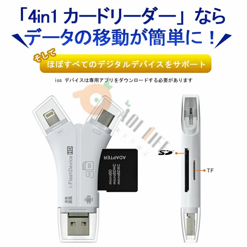 4in1 sdカードリーダー ホビナビ スマホ 容量 移動 移行 動画 TypeC Mac iPad 音楽 カメラリーダー カメラ Android