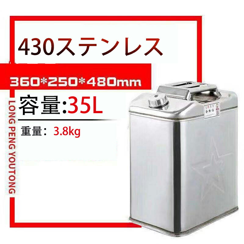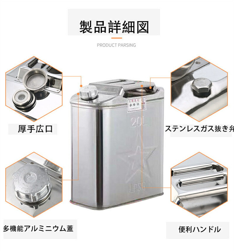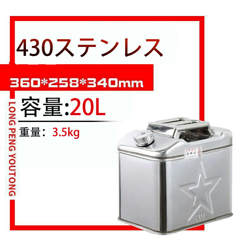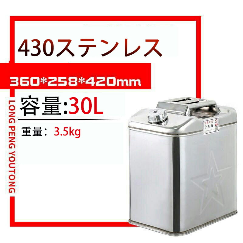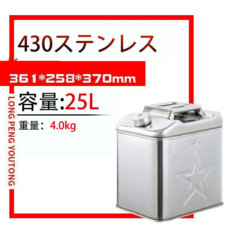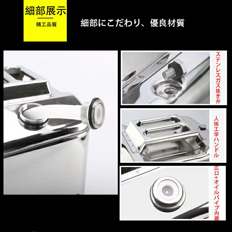 緊急用携行缶 軽量 ガソリン携行缶 ノズル付きボトルタイプ ステンレス 鋼板厚 ステンレス業務用 保管用に 0.8mm 430ステンレス鋼 5L 10L 15L 20L 30L 35L 40L 25L