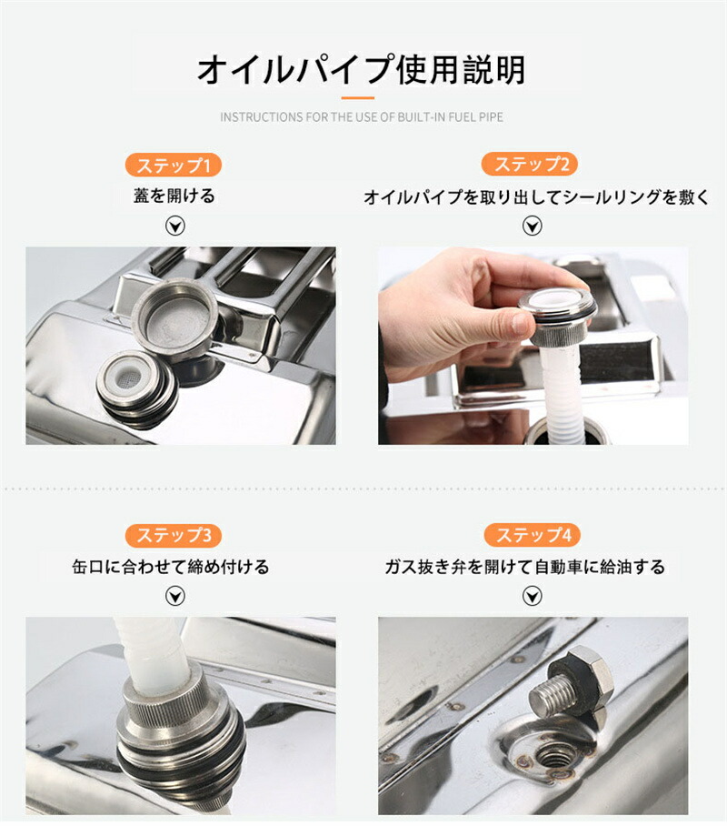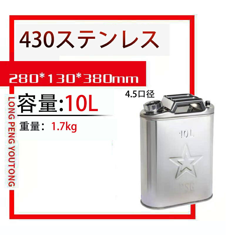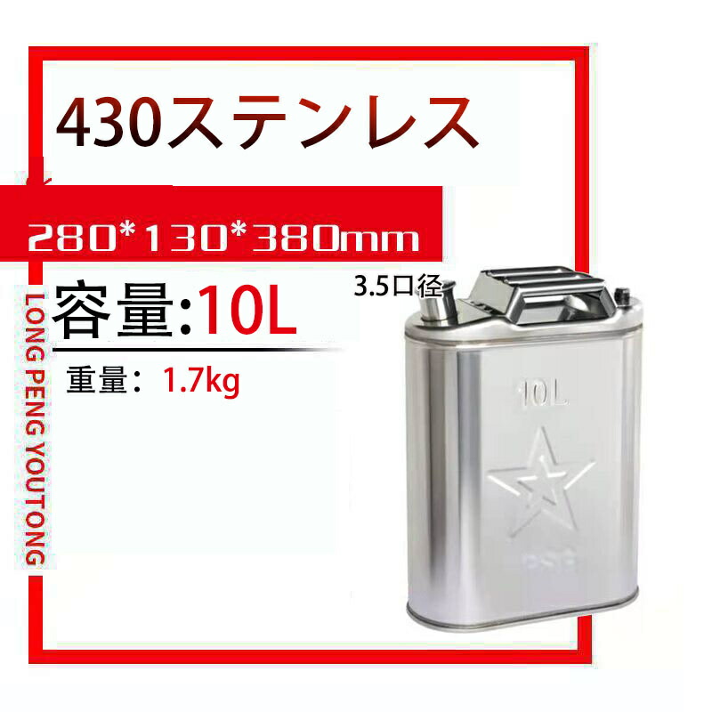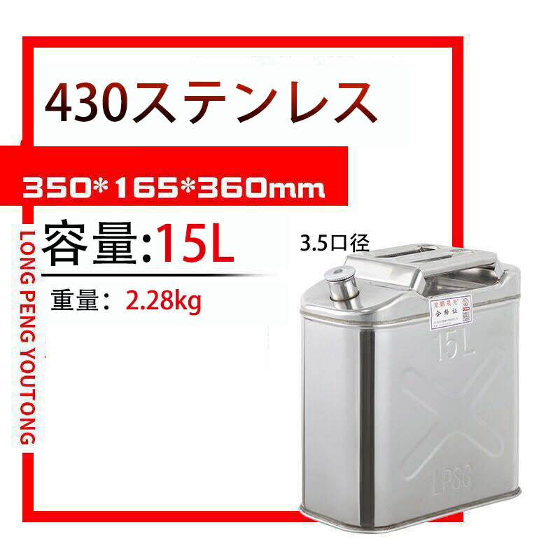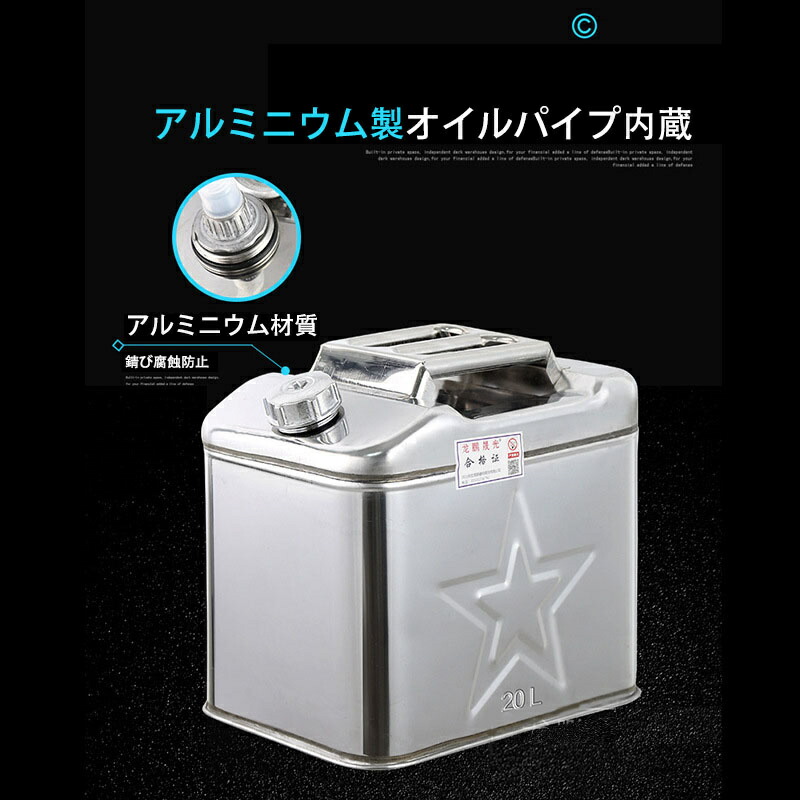 緊急用携行缶 軽量 ガソリン携行缶 ノズル付きボトルタイプ ステンレス 鋼板厚 ステンレス業務用 保管用に 0.8mm 430ステンレス鋼 5L 10L 15L 20L 30L 35L 40L 25L