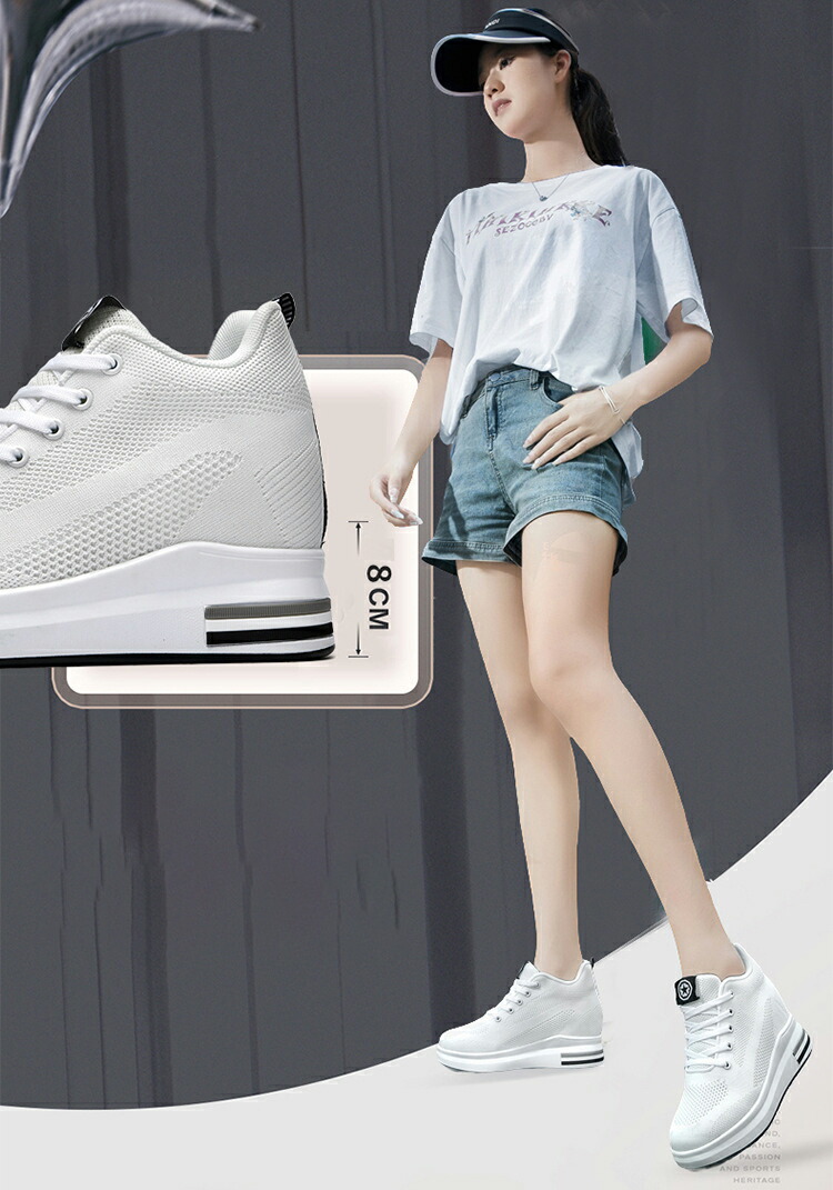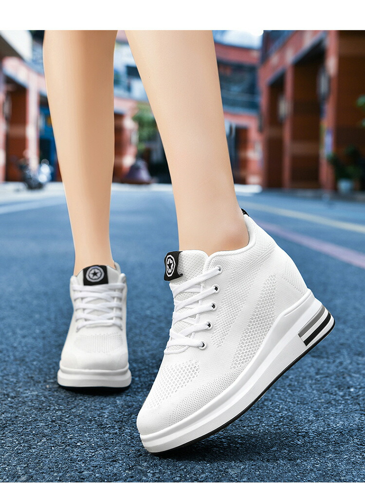 厚底 スニーカー レディース 厚底スニーカー 8CM インヒールスニーカー ウォーキングシューズ 美脚 脚長 黒 白スニーカー スタイルアップ 軽量 ハイカット きれいめ 厚底靴 おしゃ 厚底シューズ