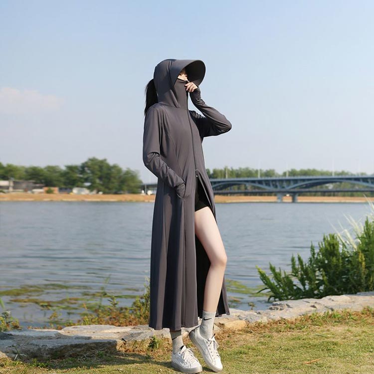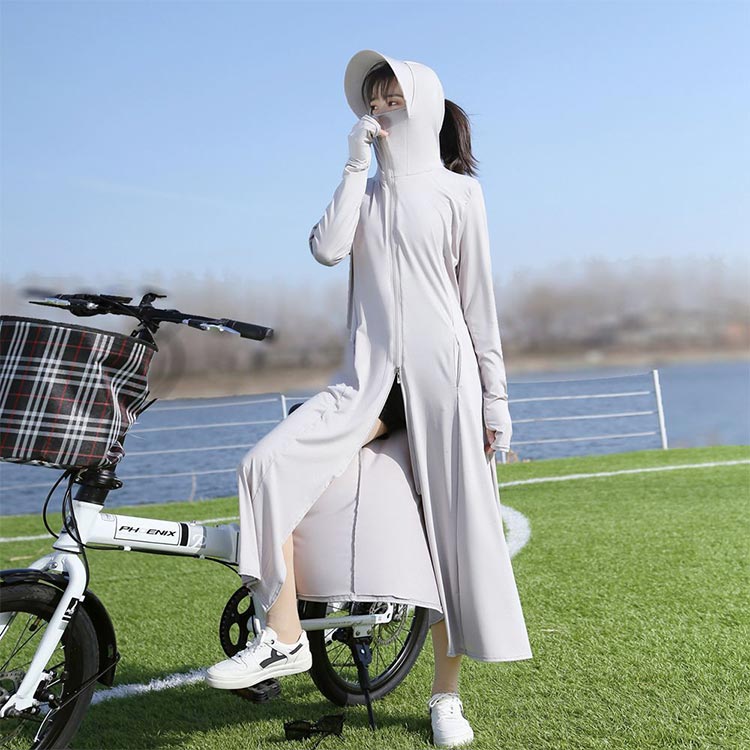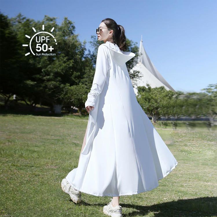 アンクルまでの超ロング丈で、足元から頭までをしっかりと紫外線から守ります。