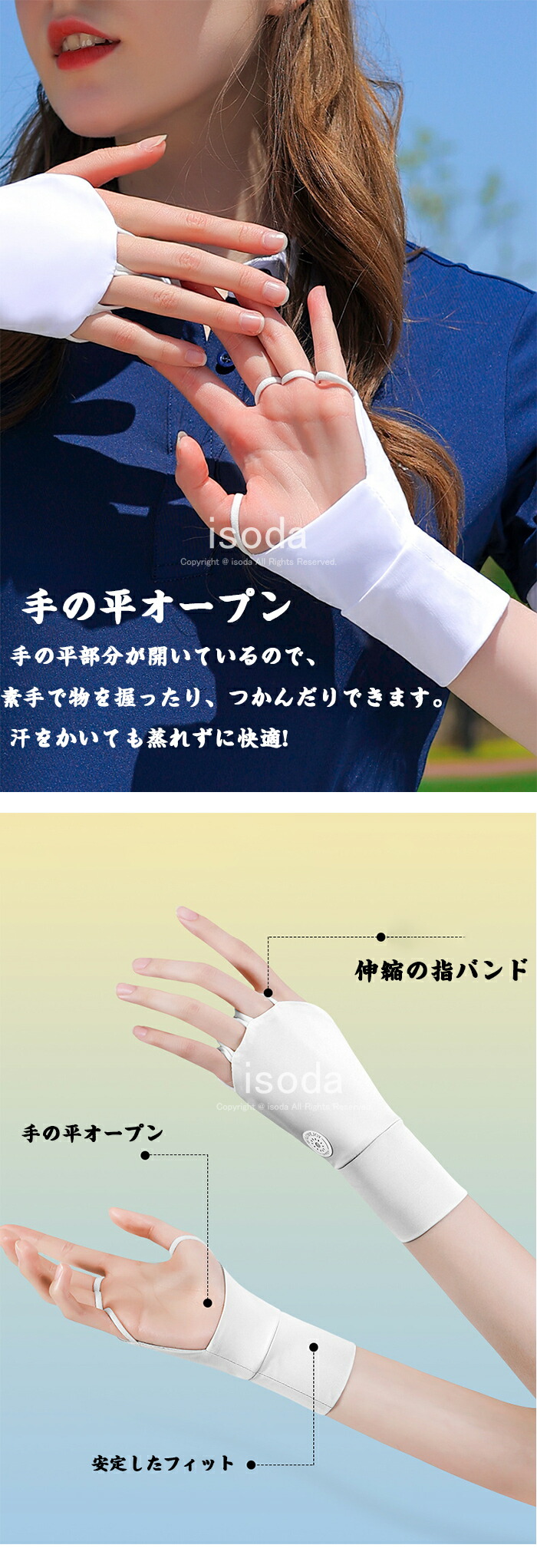 UVカットで有害なUVAから守り、手指のケガを防ぐ。 手の甲の日焼け対策、広い面積で日焼けを防ぎ、手の涼しさが長続きします。