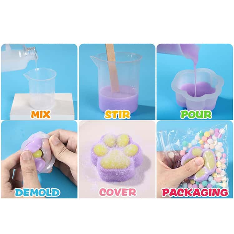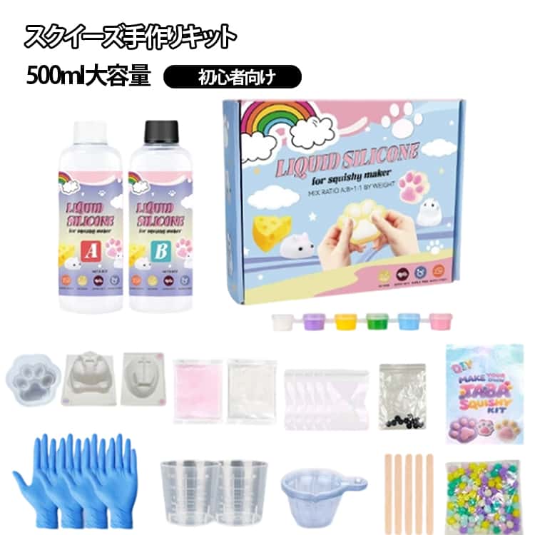 スクイーズ手作りキット DIY キット ストレス解消 500ml こども やみつき 肉球モールド レジン アソート キッズ グミ 子供 握る モチモチ スクイーズおもち ソフト