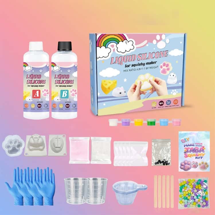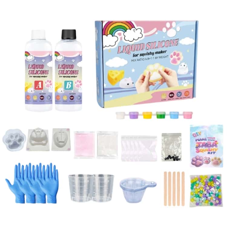 ガイド付きスクイッシーキット一式初めてのスクイッシーおもちゃの傑作を作るために必要なものすべて:プレミアム液体シリコーン、鮮やかな色のペースト、3つの再利用可能な型、フロックパウダー、ミキシングカップ、手袋など。 経験の浅いユーザー向けに設計されています。今日から自信を持って作り始めましょう。