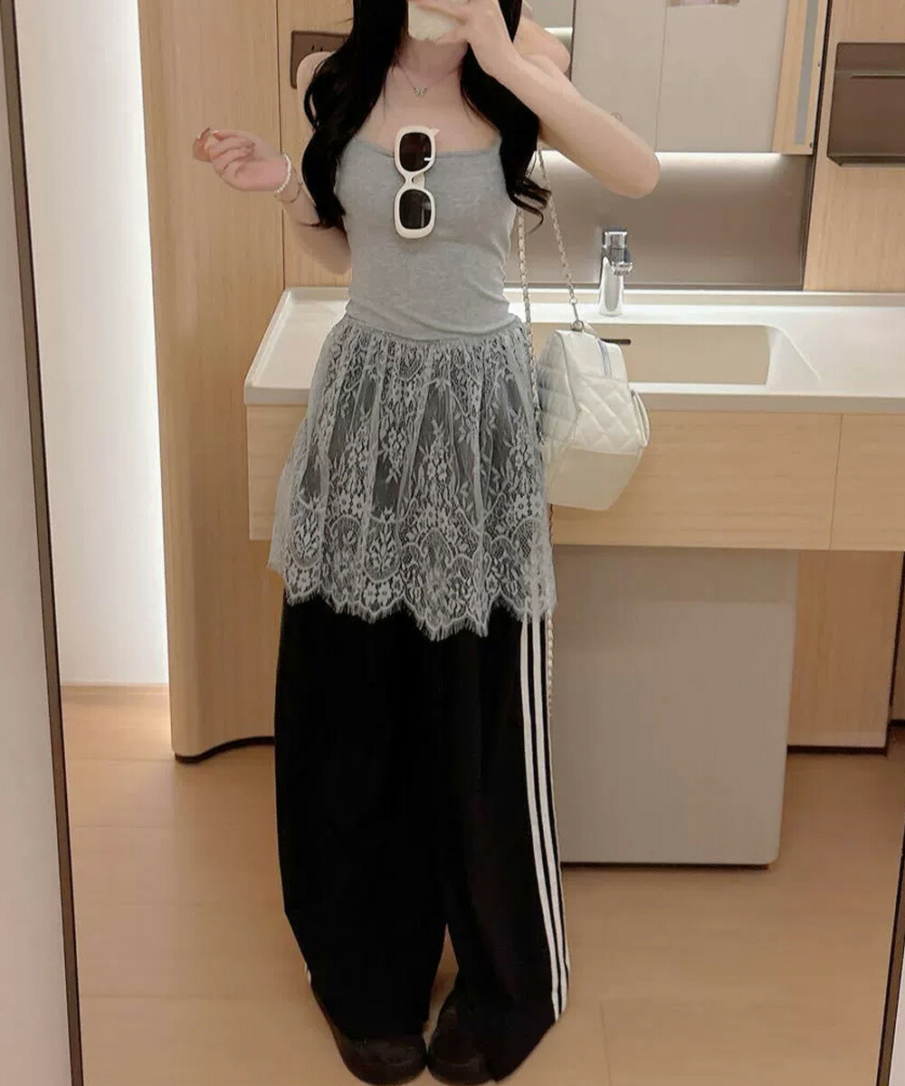 ニットやスウェットの裾からレースを覗かせて、旬な重ね着コーデに。