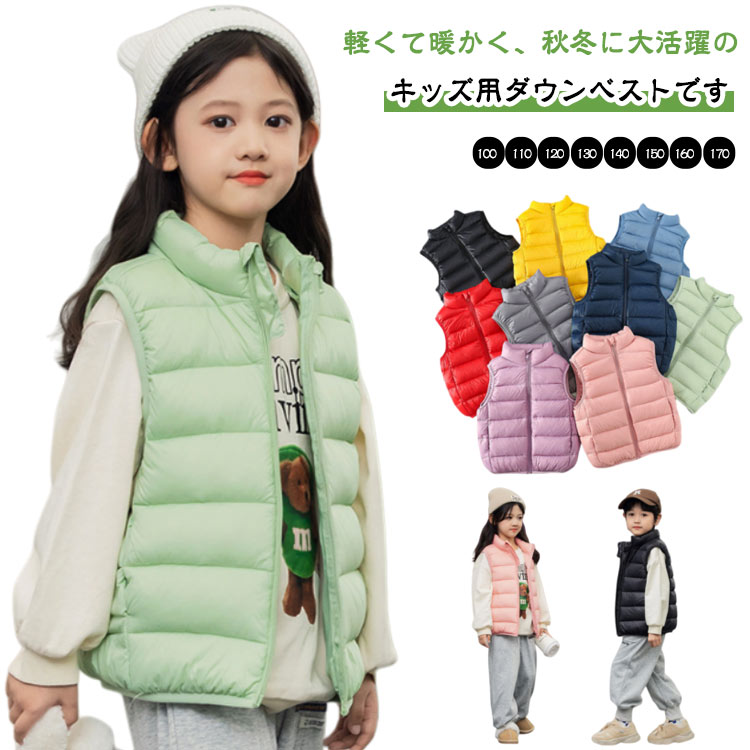 ハイネック ダウンベスト 男の子 キッズ 秋冬 中綿ベスト インナーベスト アウター 女の子 ファスナー 防寒 防水 保温 こども服 アウトドア 子供服 ノースリーブ 通園 軽量 無地 通学