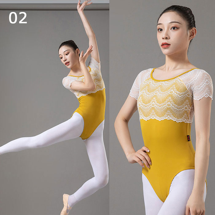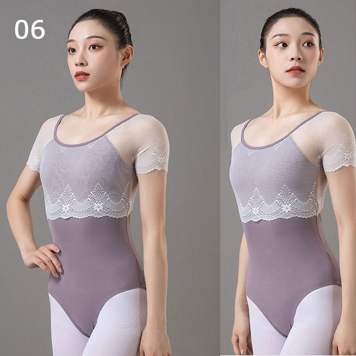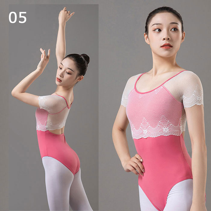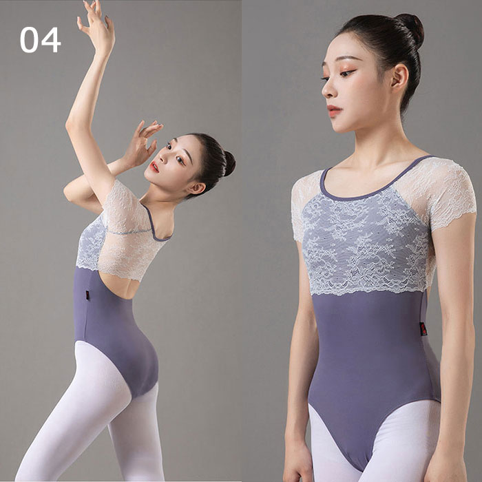 バレエ レオタード 大人用 バレエレオタード 全6色 バレリーナ バレエ用品 ダンス服 花レース 半袖 シースルー 背中あき レッスン ダンスウェア スカートなしバレエレオタード ヨガ バレエ練習着